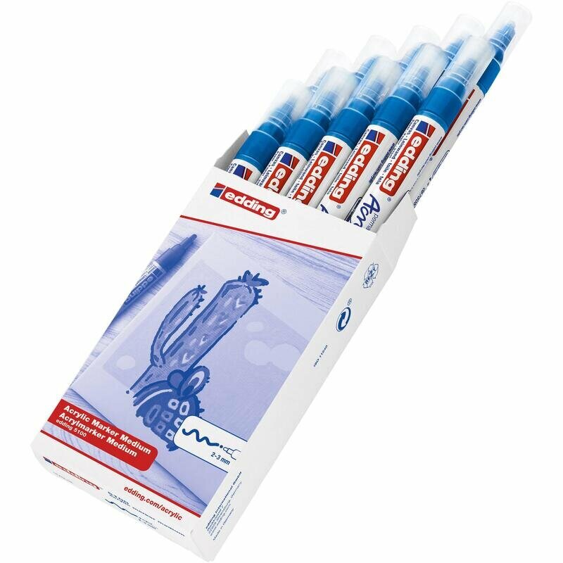Маркер акриловый Edding 5100 (2-3мм, голубой пастель), 10шт.