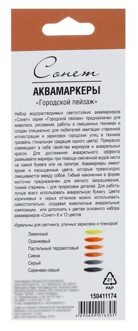 Маркеры акварельные Невская палитра Сонет "Городской пейзаж", 6 цветов 150411174 интересное: