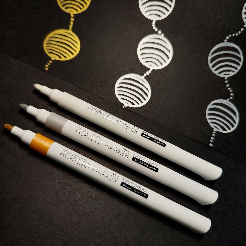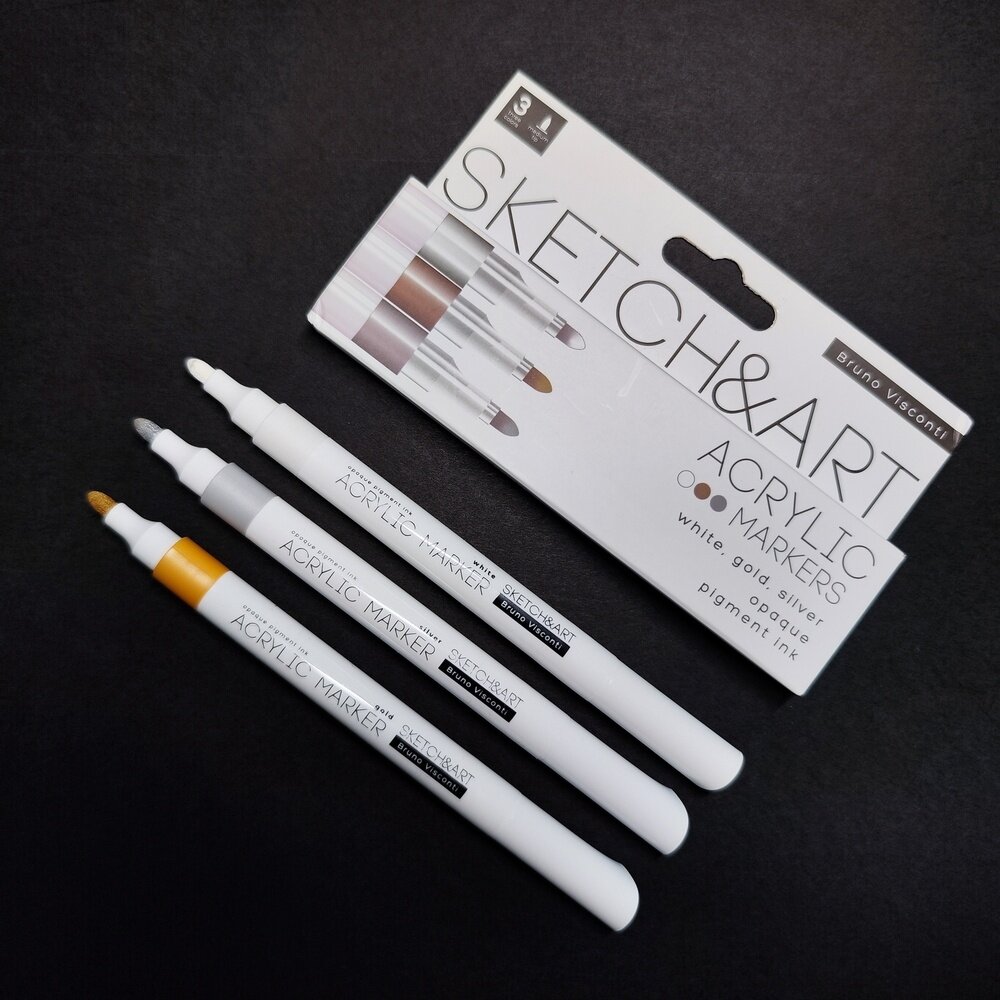 Купить Набор из 3-х акриловых маркеров BrunoVisconti Sketch&Art, золотой, серебряный, белый 22-0129