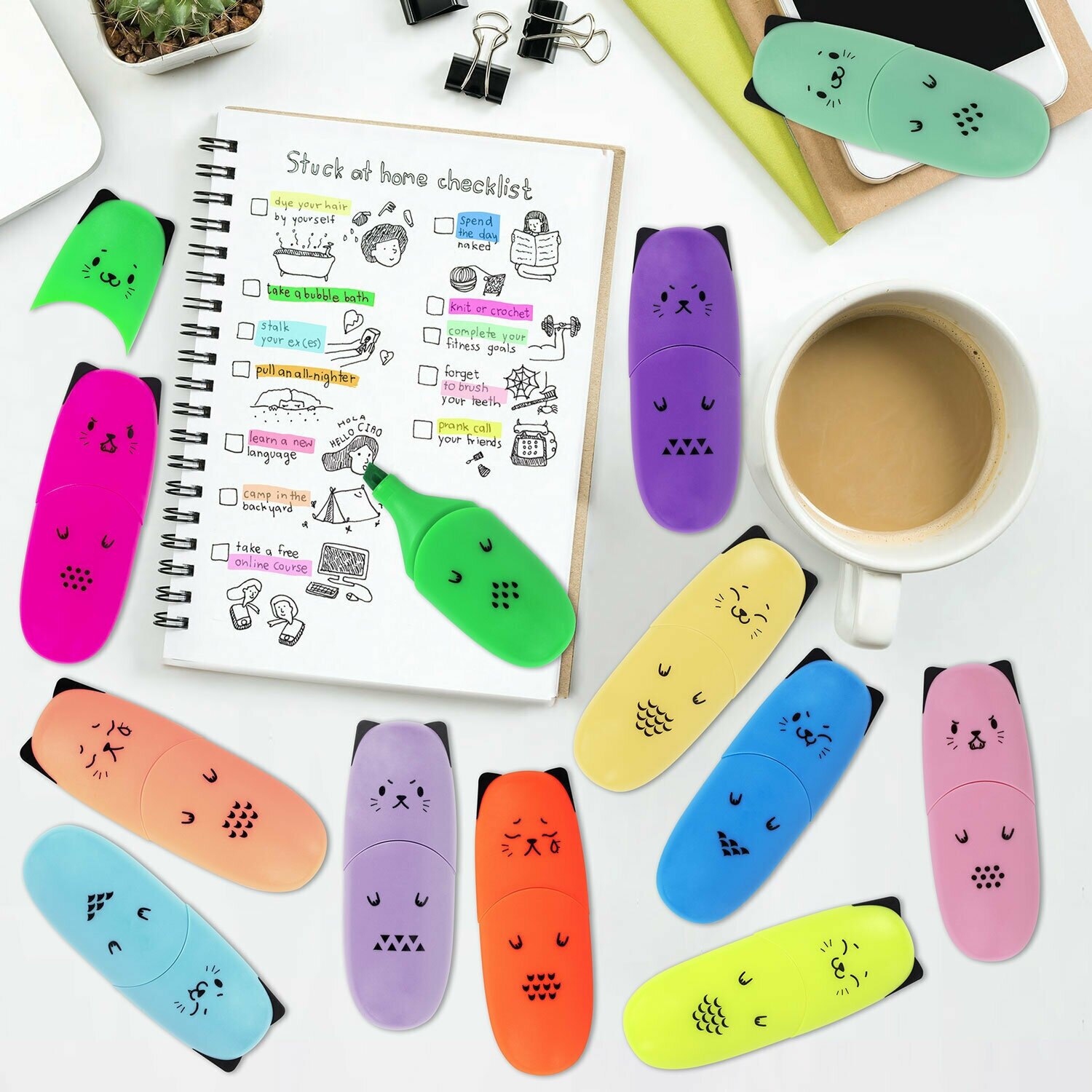 Набор текстовыделителей BRAUBERG Kids Cute Cats Neon мини 6 цветов, линия 1-5 мм 152435