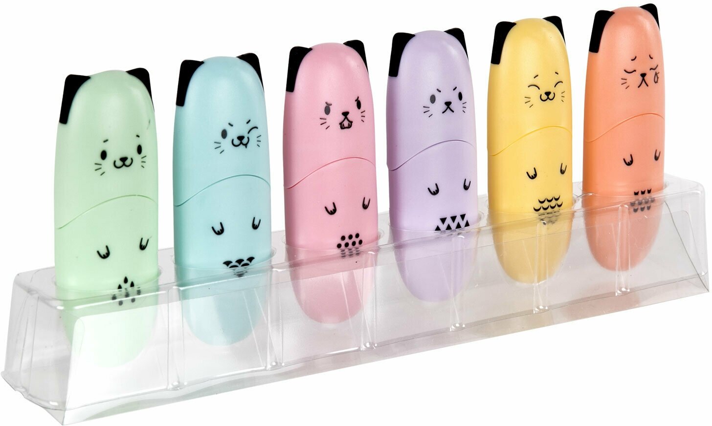 Маркер-текстовыделитель (для выделения текста) набор мини 6 Цветов Brauberg Kids Cute Cats Pastel, линия 1-5 мм, 152436