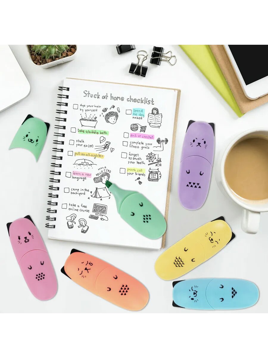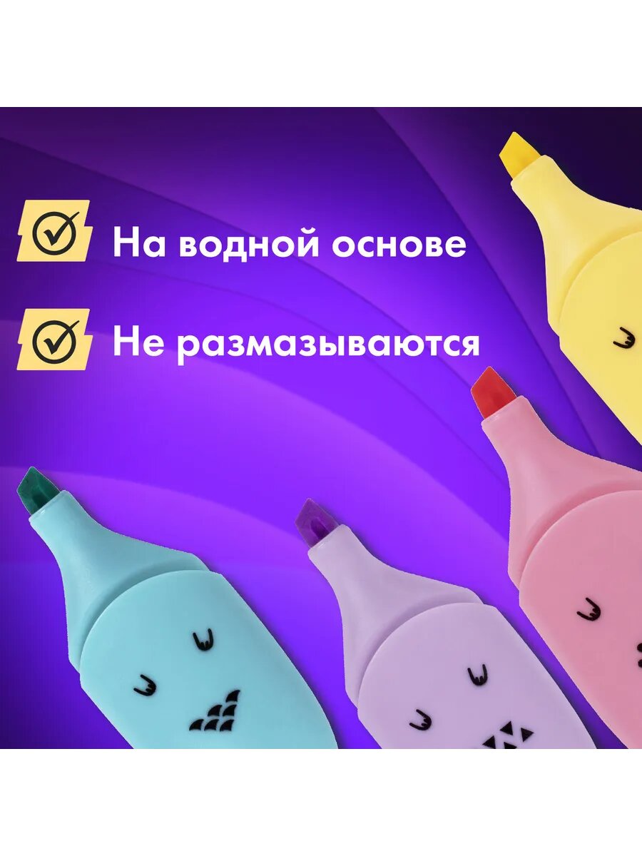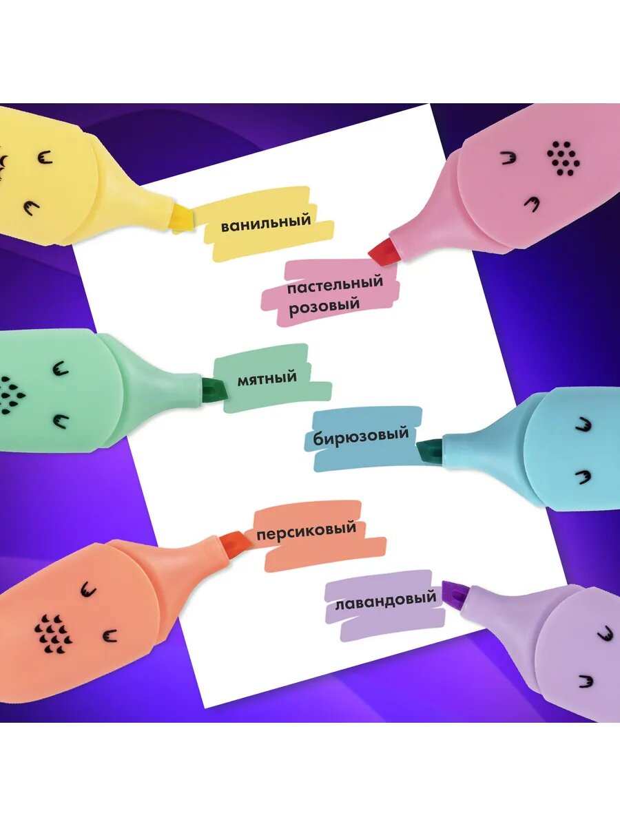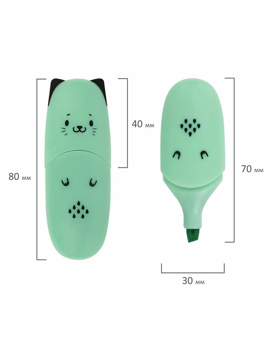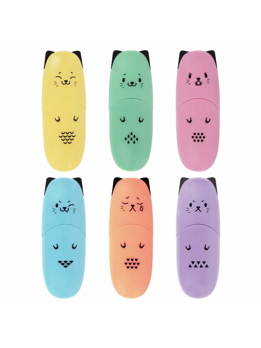 Маркер-текстовыделитель (для выделения текста) набор мини 6 Цветов Brauberg Kids Cute Cats Pastel, линия 1-5 мм, 152436