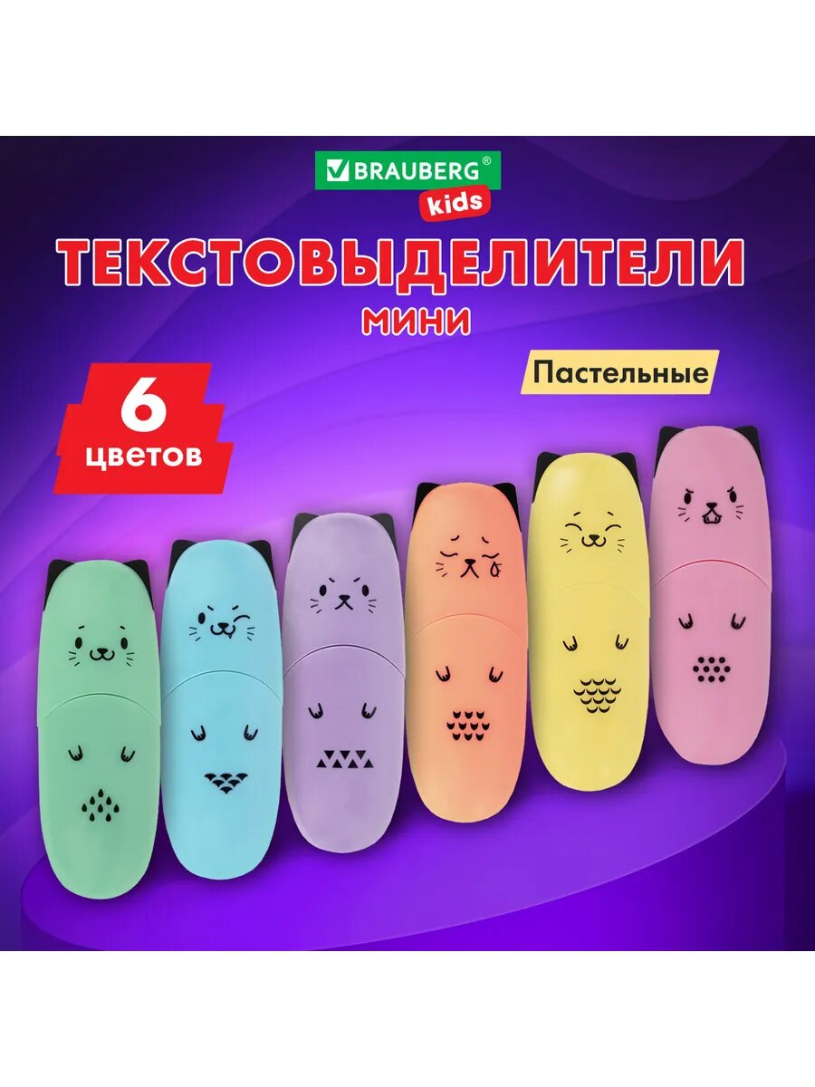 Купить Набор текстовыделителей мини 6 цветов BRAUBERG KIDS "CUTE C