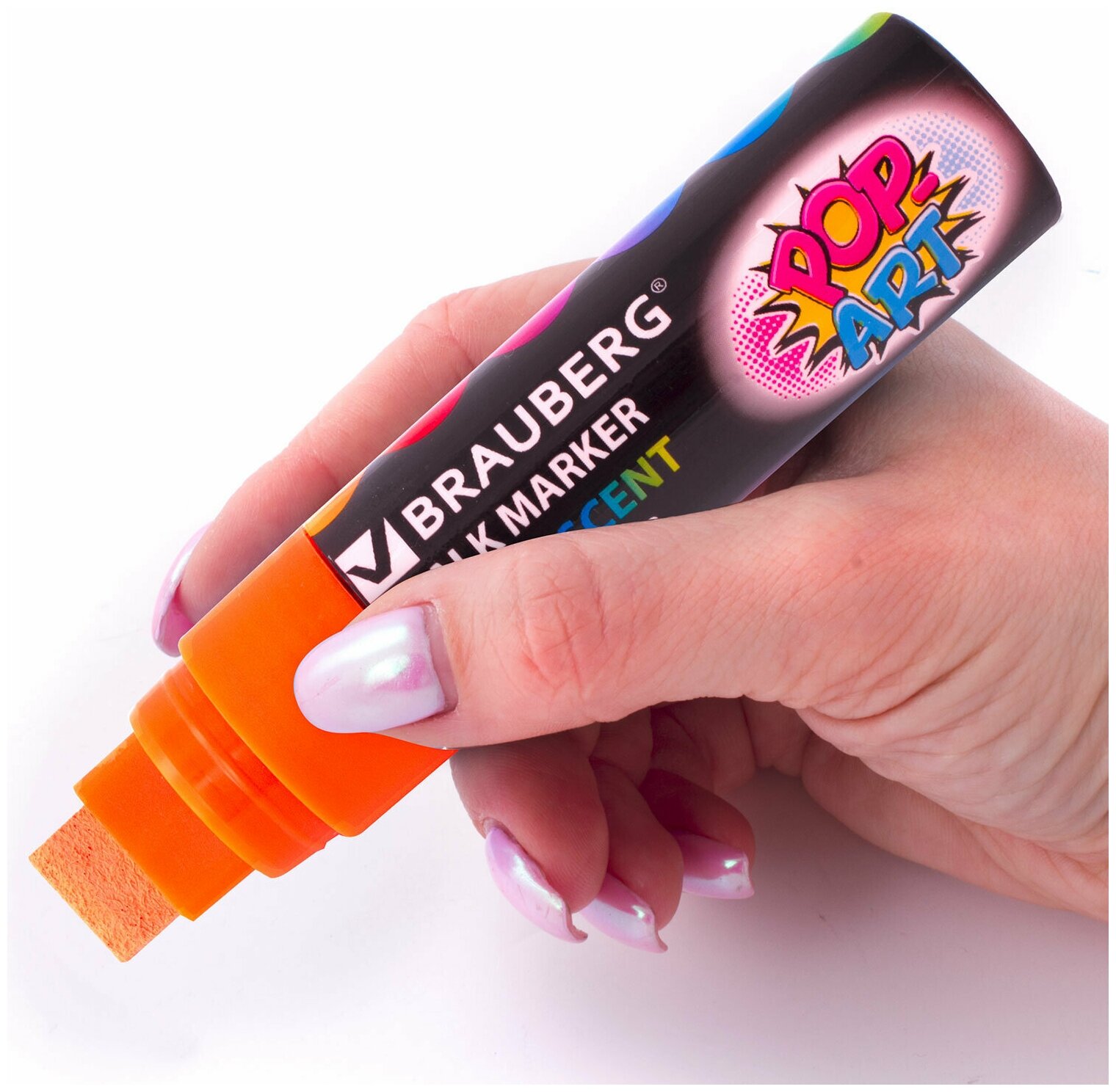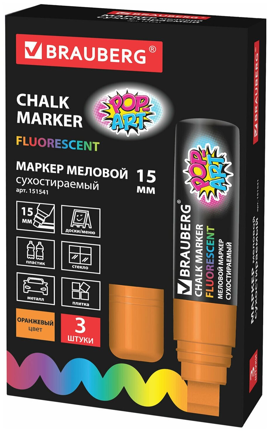 Маркер меловой Brauberg Pop-Art (15мм, оранжевый) (151541), 3шт.