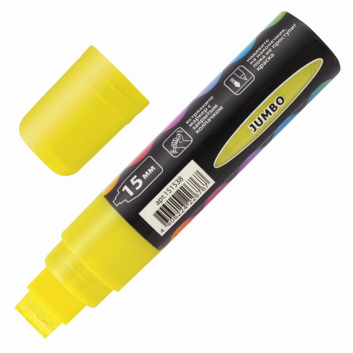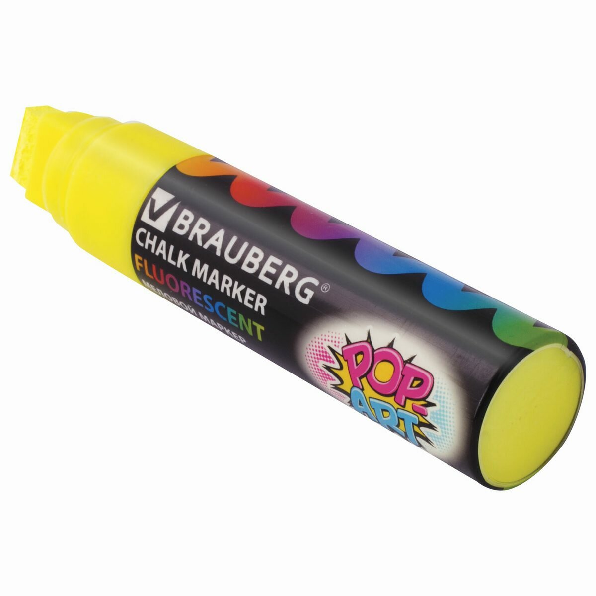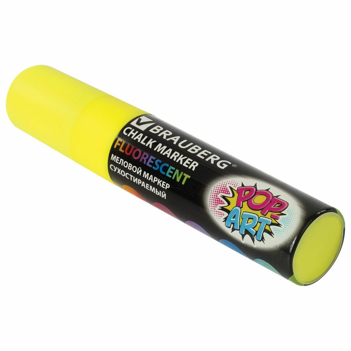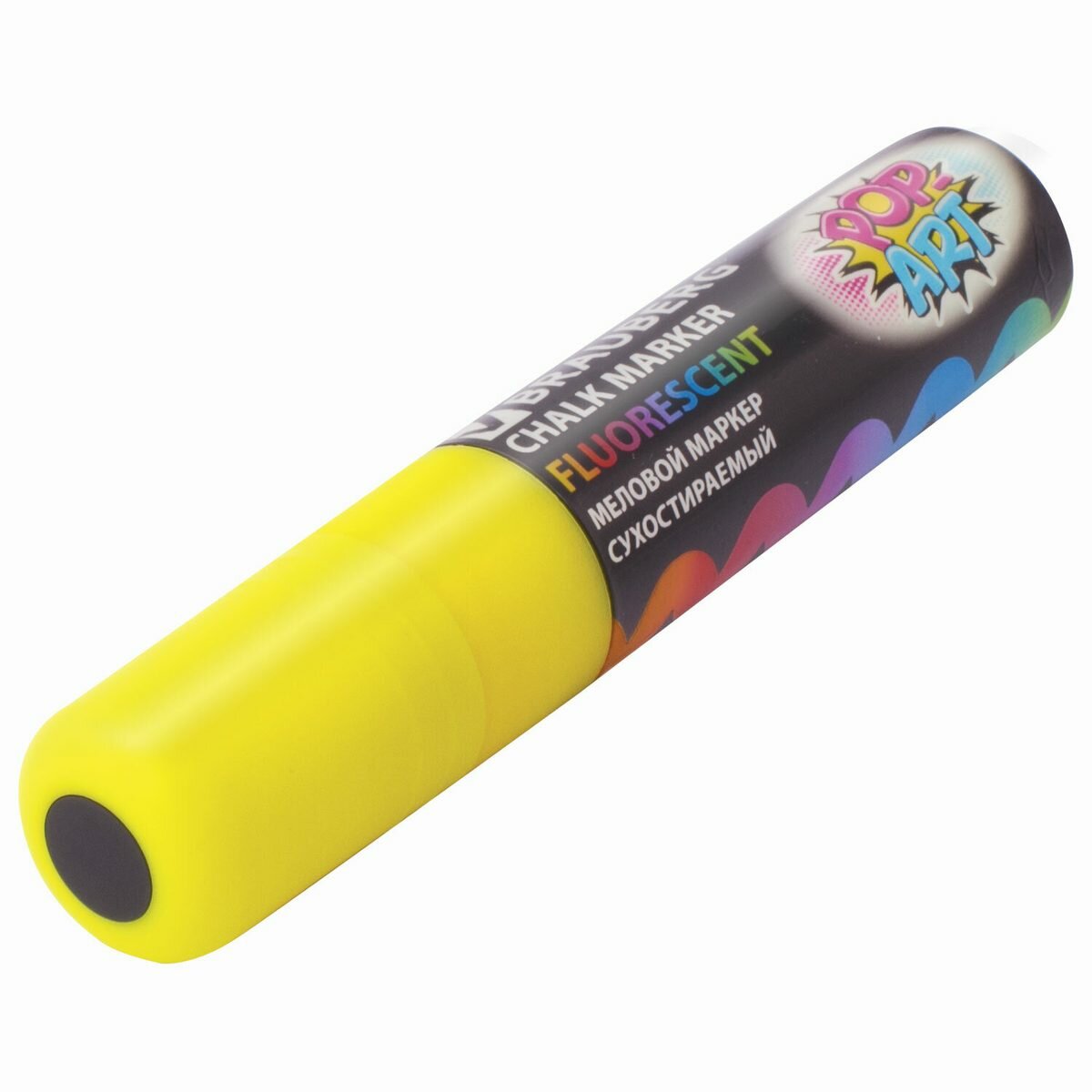 Маркер / фломастер меловой стираемый для доски Pop-art Желтый, 15 мм, стираемый, для гладких поверхностей, Brauberg, 151538