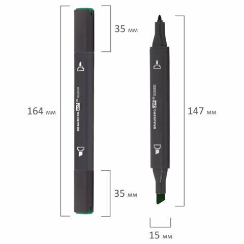 Маркер для скетчинга двусторон. 1мм/6мм BRAUBERG Оксид хрома зеленый (B962)