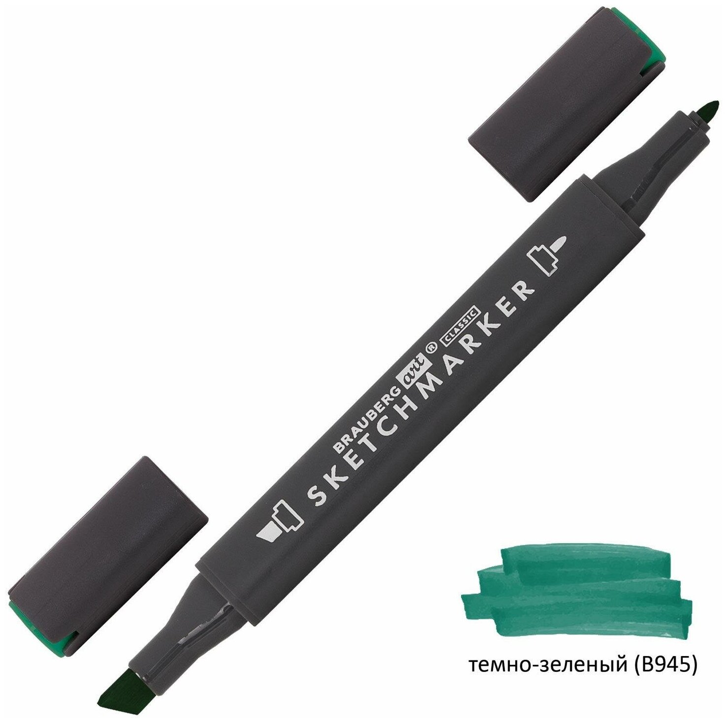 Купить Маркер для скетчинга двусторонний 1 мм - 6 мм BRAUBERG ART CLASSIC, темно-зеленый (B945), 151807