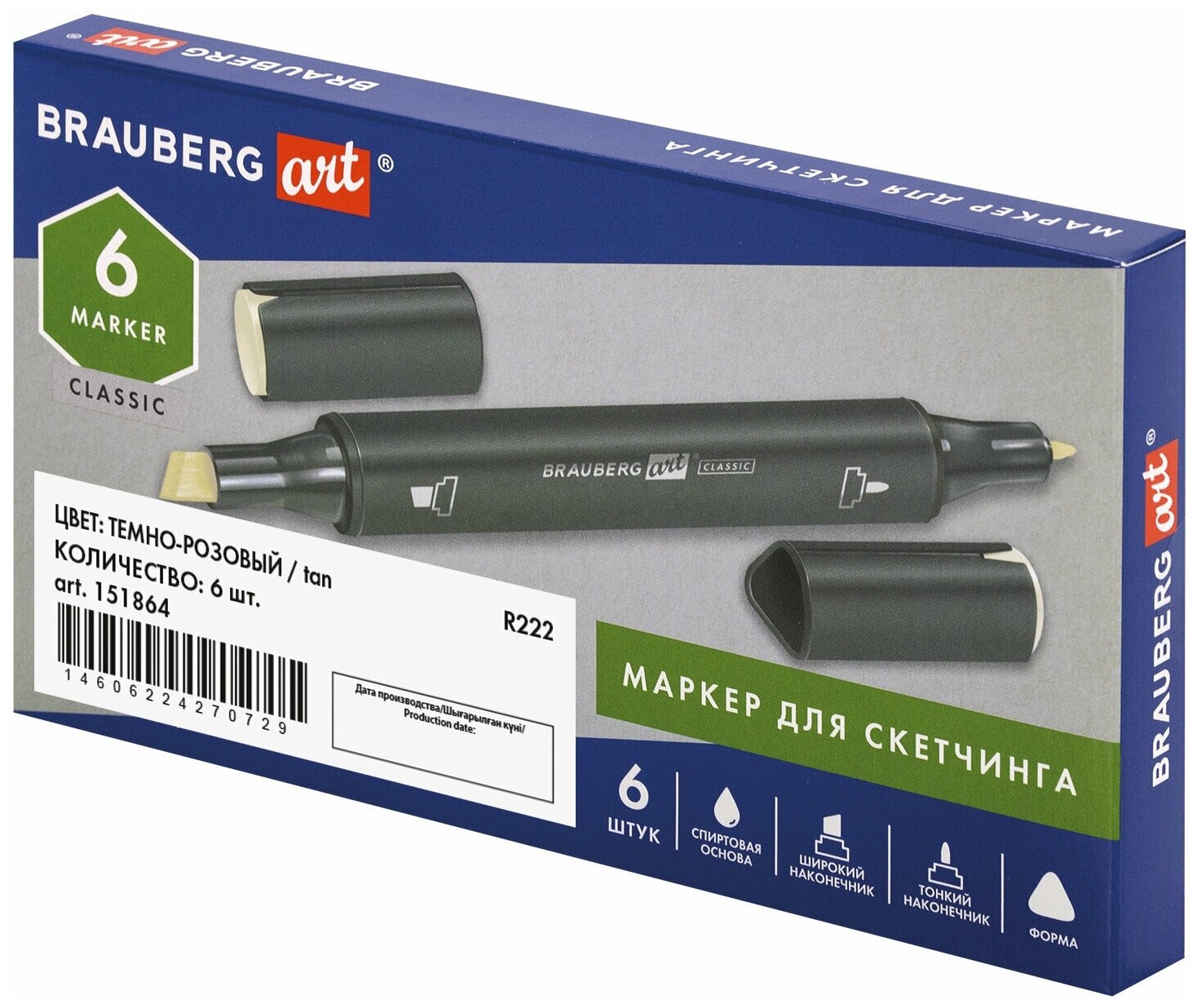 Маркер для скетчинга двусторонний 1 мм - 6 мм BRAUBERG ART CLASSIC, блендер (0), 151768 (6 штук в упаковке)