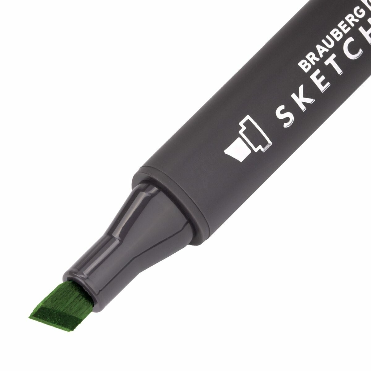 Маркер для скетчинга двусторон. 1мм/6мм BRAUBERG Зеленый мох (B754)