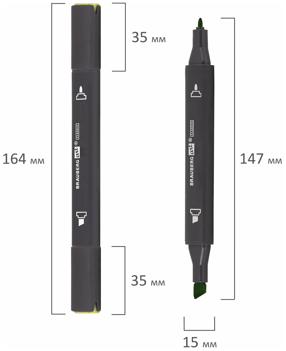 Маркер художественный двусторонний Brauberg Art Classic, 1/6мм, зеленый мох (b754), 6шт. (151837)