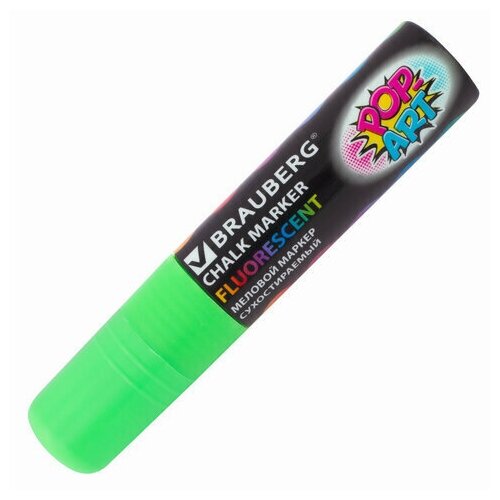 Маркер меловой "POP-ART" зеленый, 15 мм, сухостираемый, для гладких поверхностей, BRAUBERG, 151542