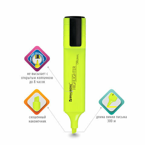 Маркер-текстовыделитель (для выделения текста) 4 Цвета, Brauberg Original Neon, линия письма 1-5 мм, 152215