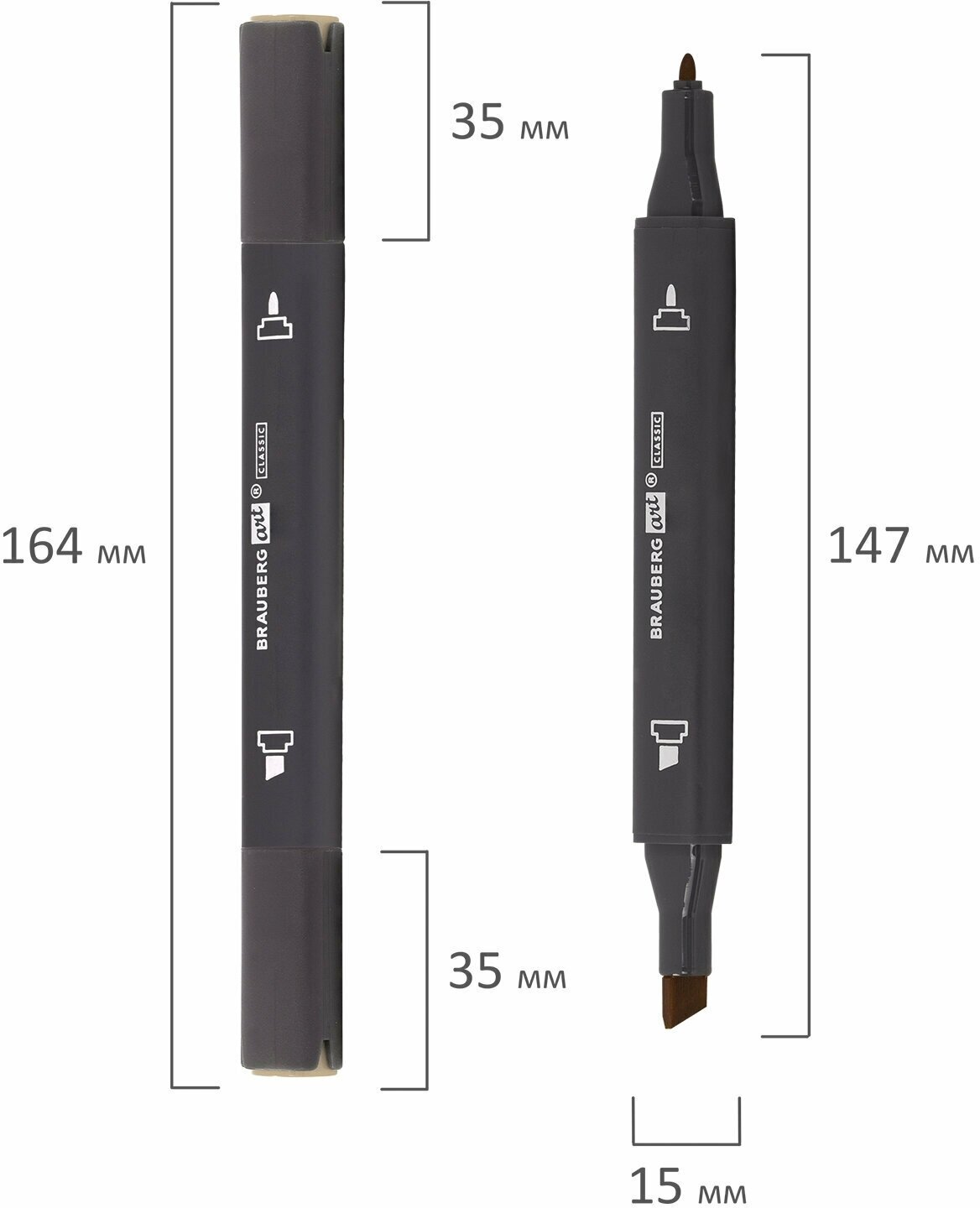 Маркер для скетчинга двусторонний 1 мм - 6 мм BRAUBERG ART CLASSIC, блендер (0), 151768 (6 штук в упаковке)