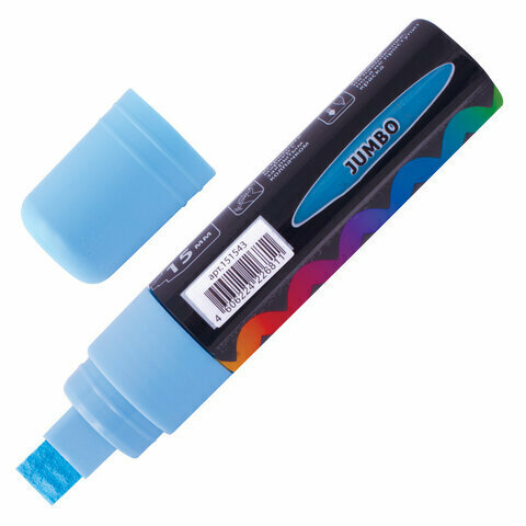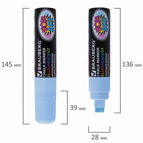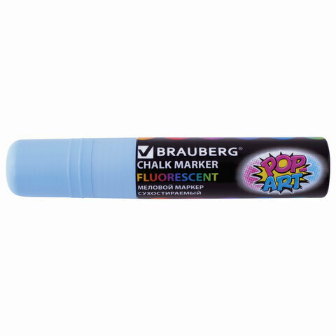 Маркер / фломастер меловой стираемый для доски и других поверхностей Pop-art Голубой, 15 мм, стираемый, для гладких поверхностей, Brauberg, 151543