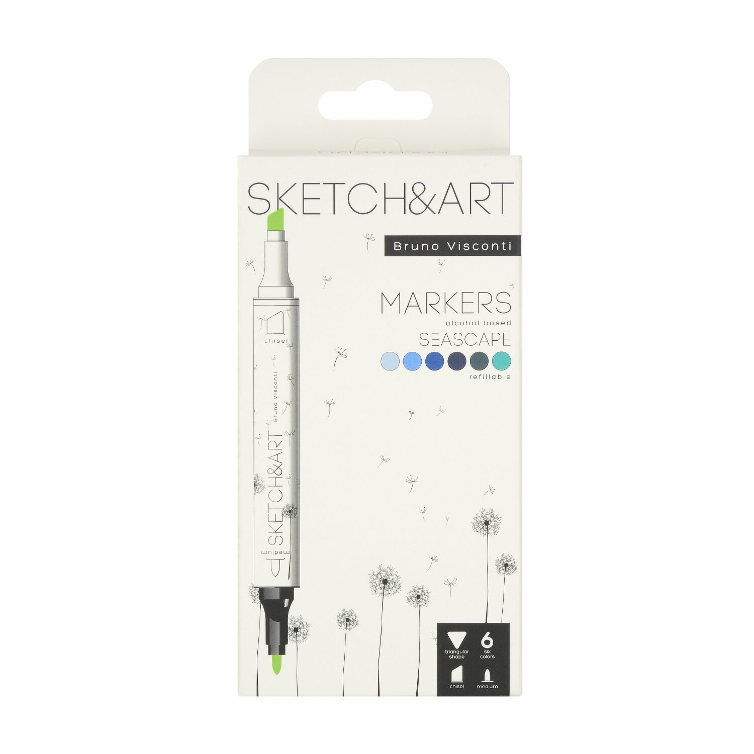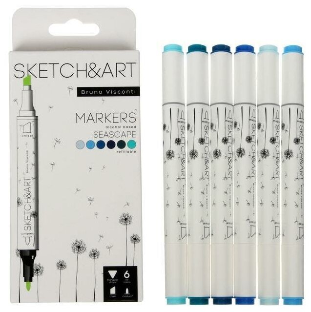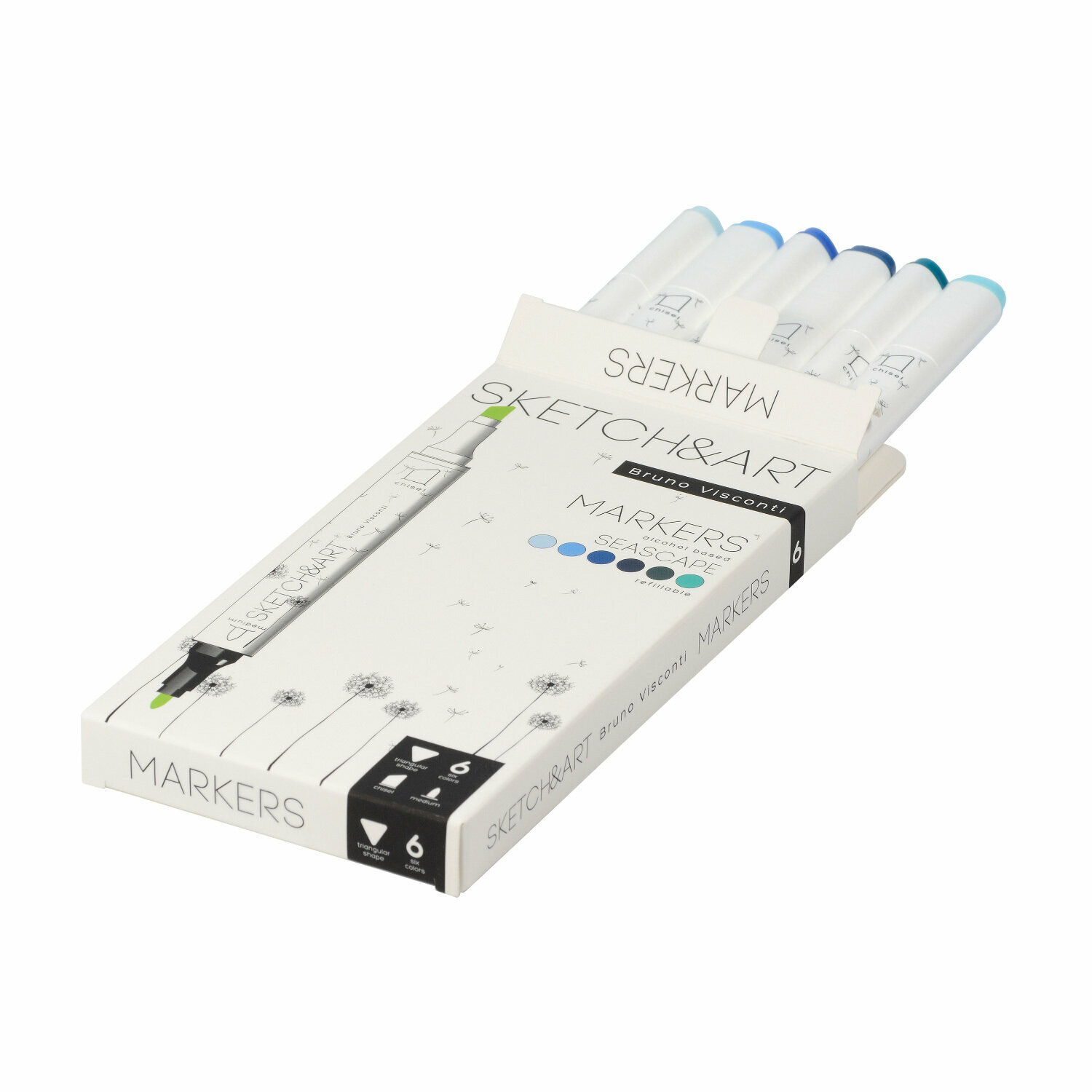 Купить Маркеры для скетчинга / фломастеры двухсторонние набор 6 цветов спиртовые для рисования граффити Bruno Visconti "SKETCH&ART. Seascape" арт.22-0081/10