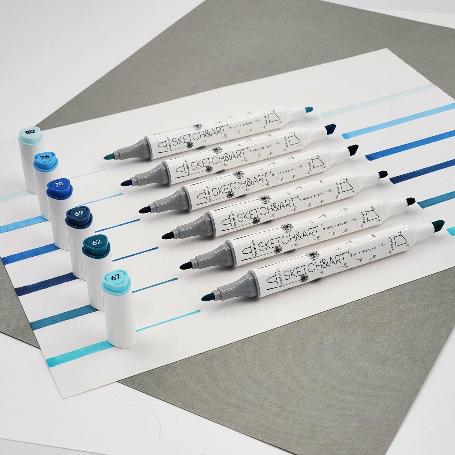 Маркеры для скетчинга / фломастеры двухсторонние набор 6 цветов спиртовые для рисования граффити Bruno Visconti "SKETCH&ART. Seascape" арт.22-0081/10 интересное:
