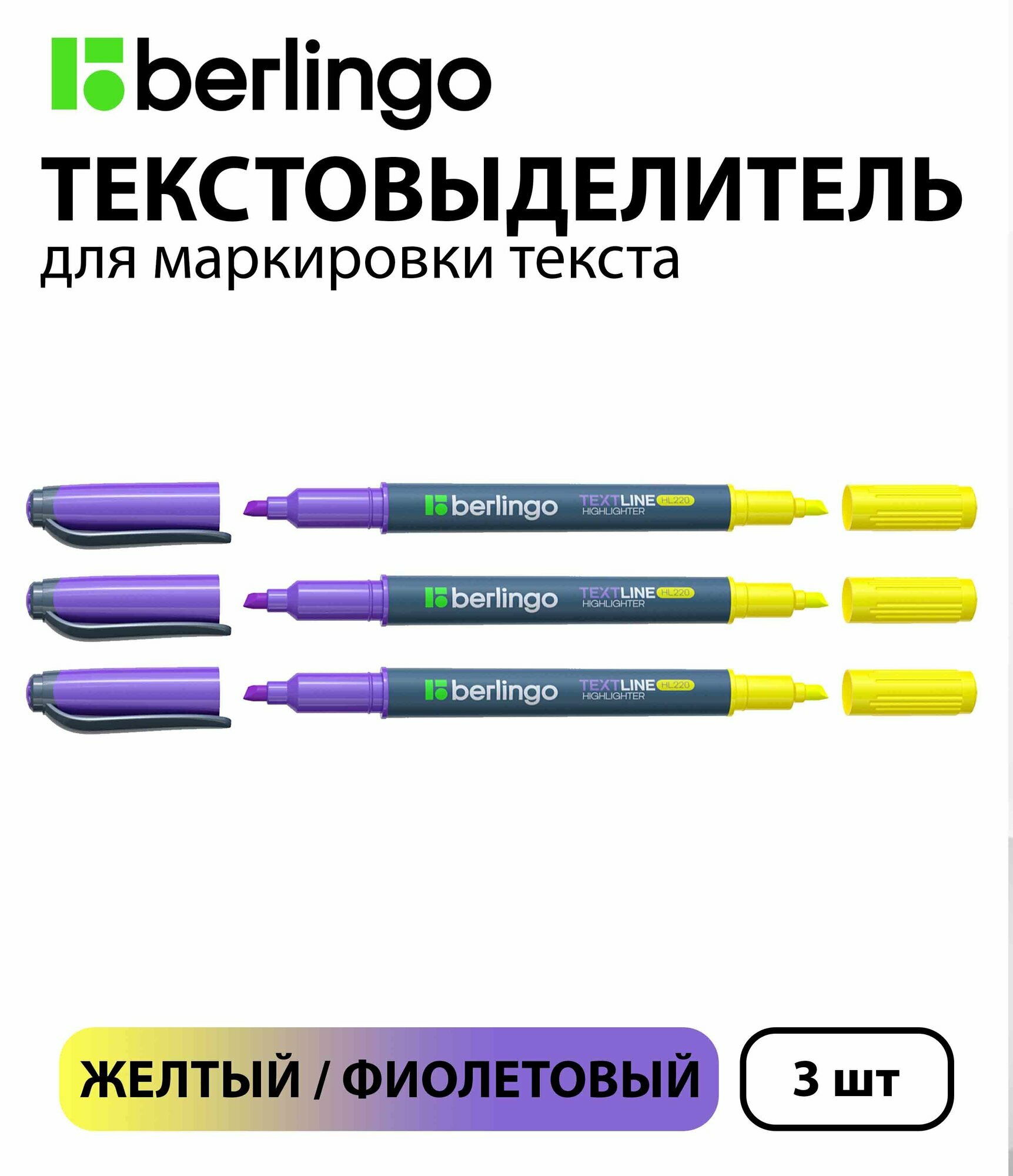 Купить Набор 3 шт. - Текстовыделитель двусторонний Berlingo "Textline HL220" желтый/фиолетовый, 0,5-4 мм T2031