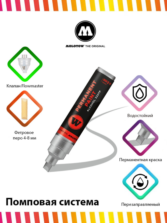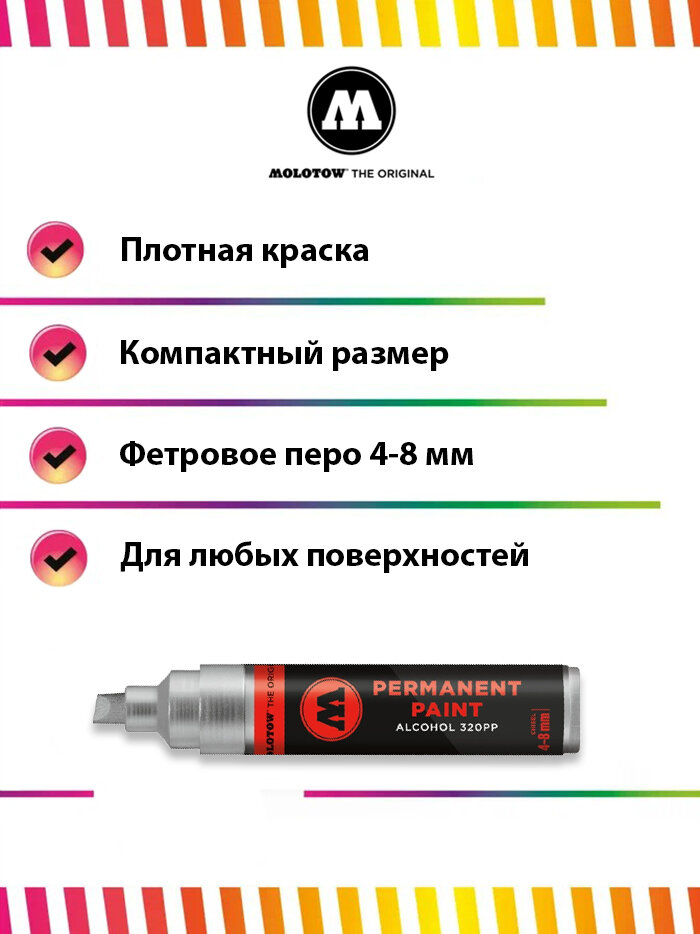 СохранитьПерманентный маркер Molotow permanent paint 320PP 230400 хром 4-8 мм интересное: