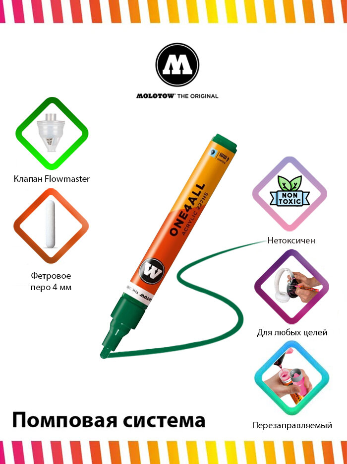 Molotow Маркер акриловый 227HS "One4All", №222, Зеленый 4мм