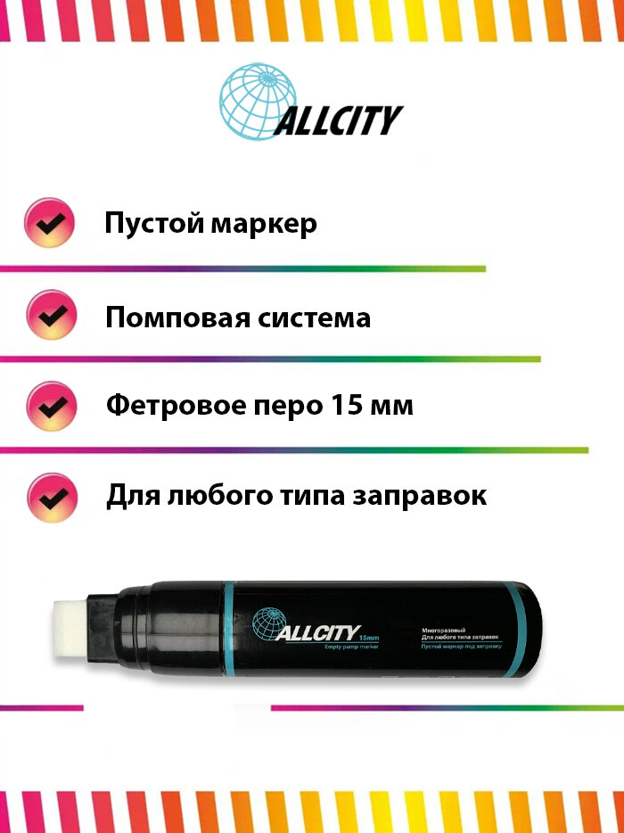 Маркер под заправку для граффити и дизайна Allcity сквизер пустой 10мм