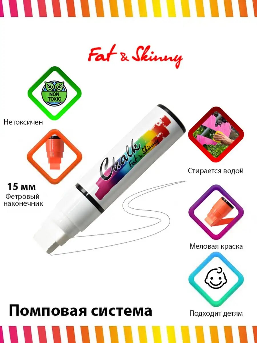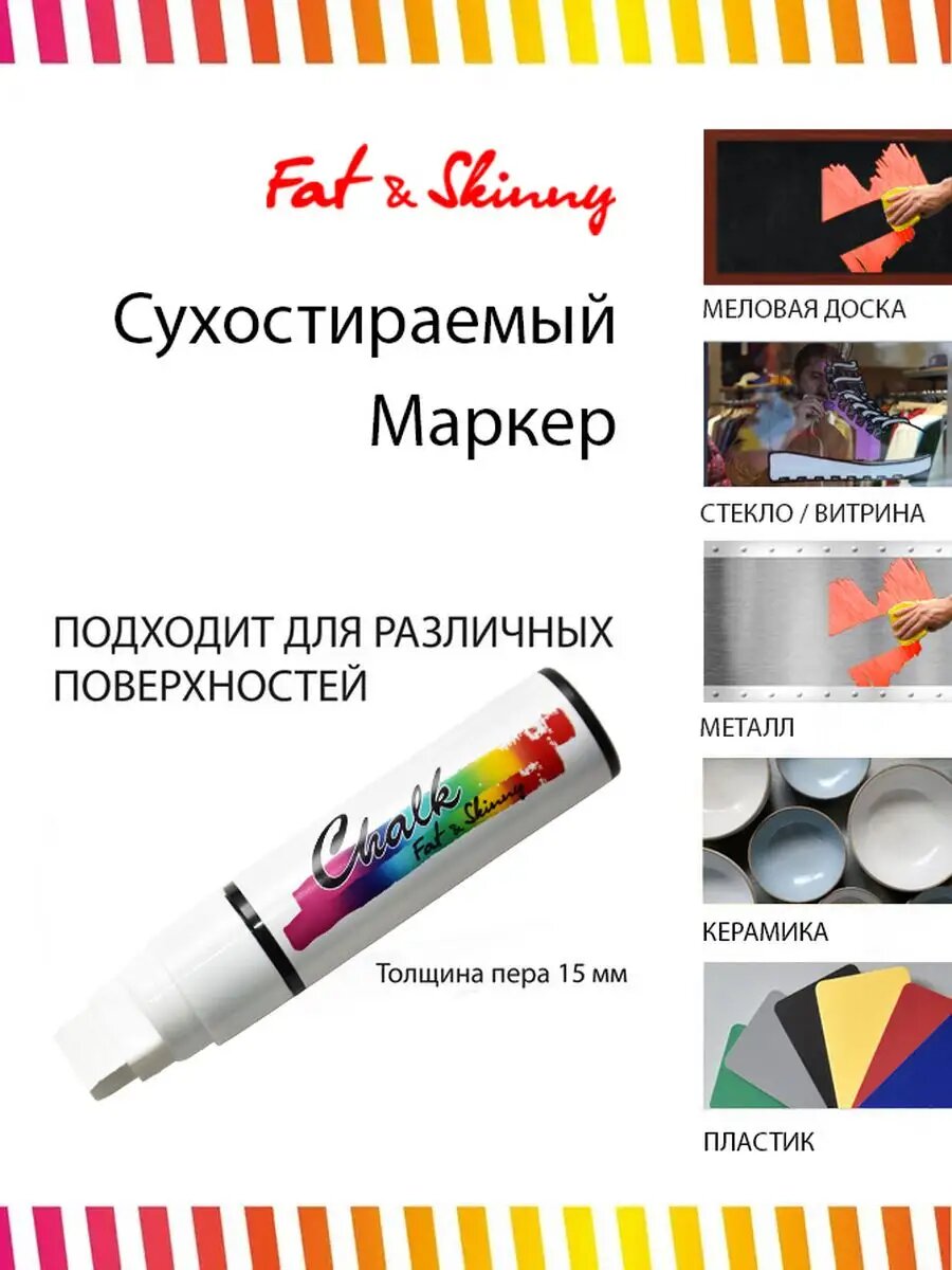 Меловой маркер Fat&Skinny CHALK 15 мм стираемый белый интересное: