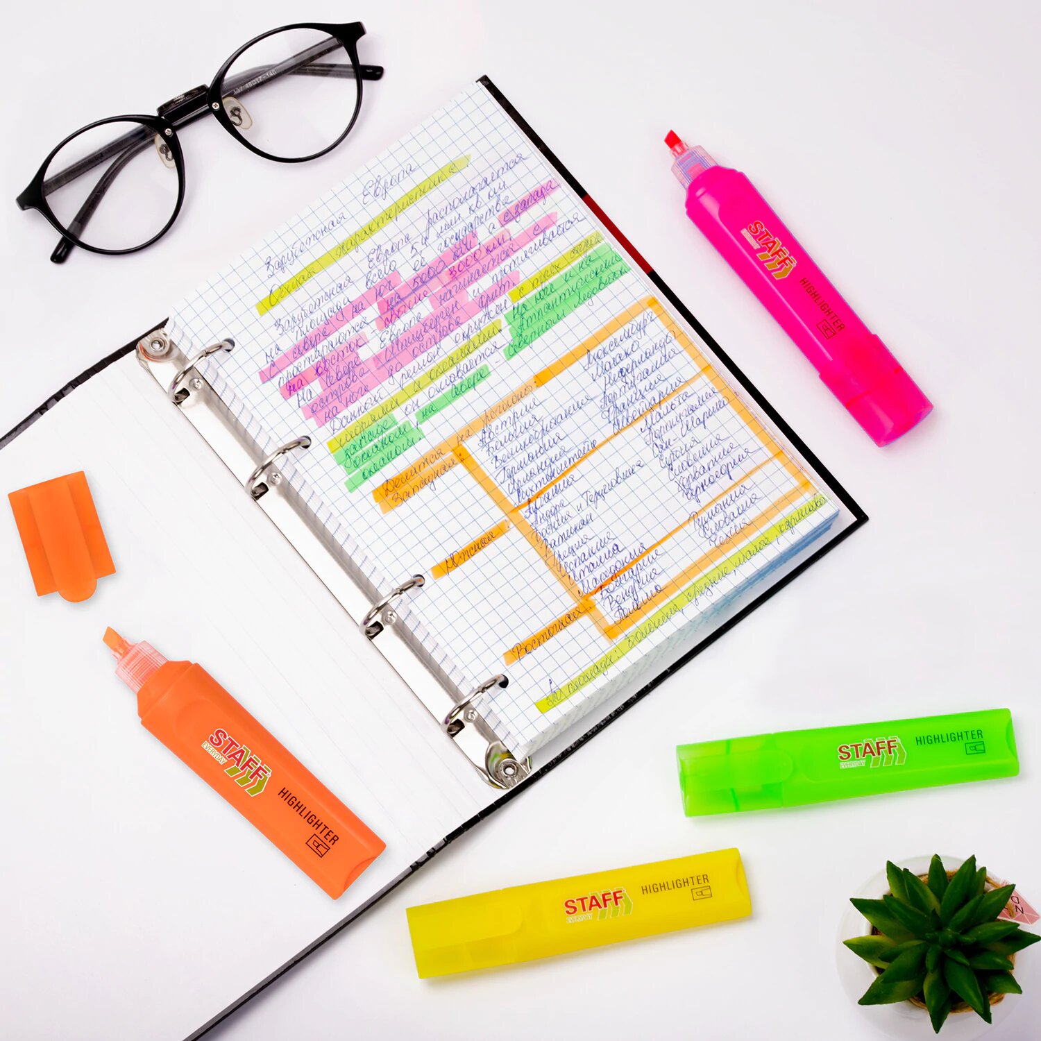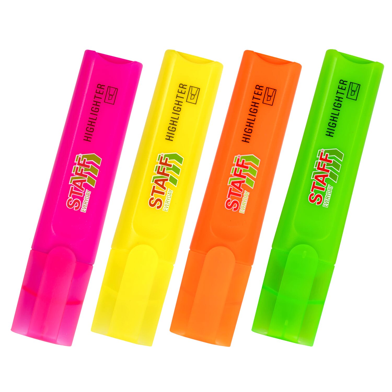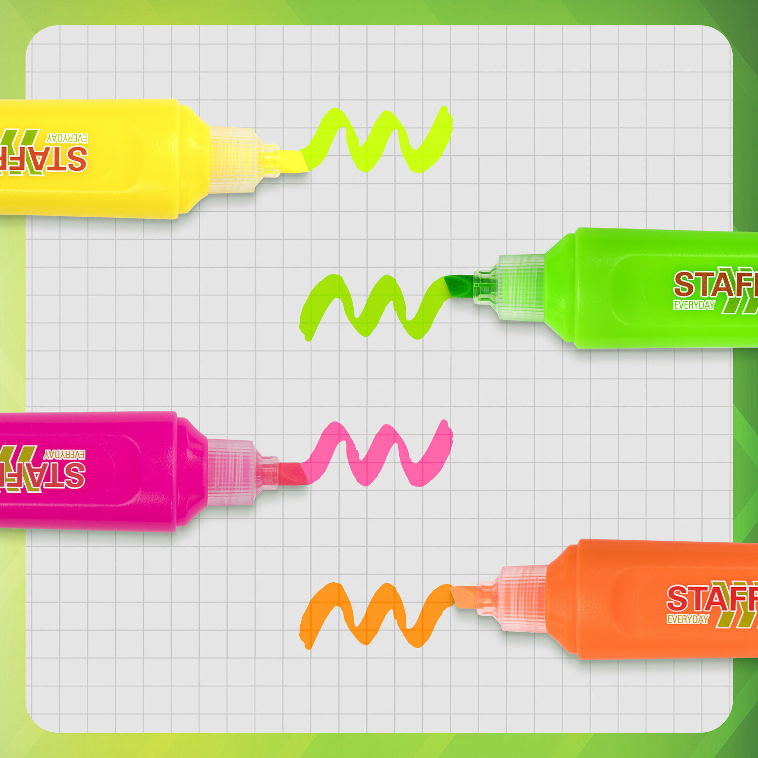 Купить Текстовыделители набор 4 цвета, маркеры для рисования, скетчинга и выделения текста неоновые, линия 1-5 мм, Staff Everyday HL-720, 152555