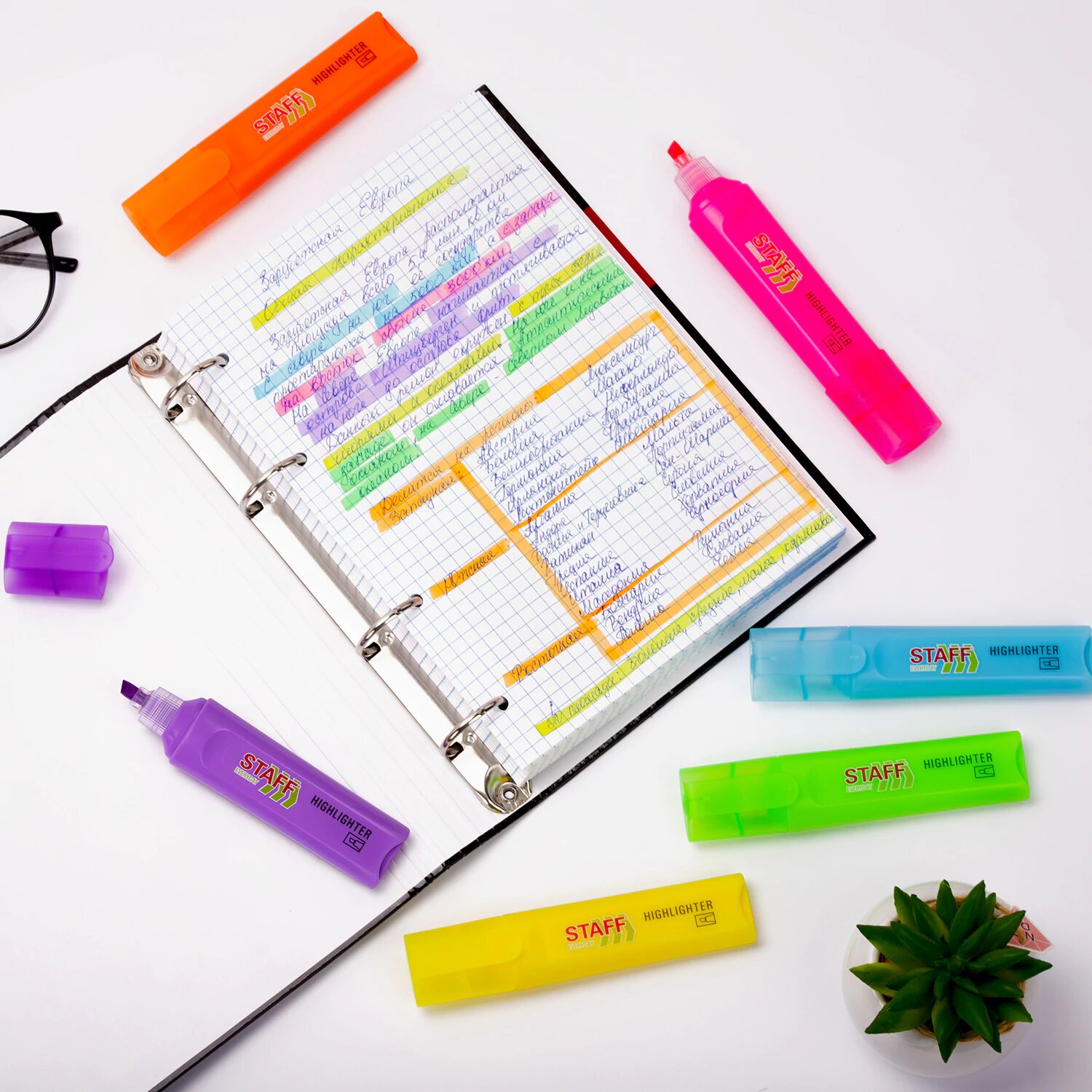 Текстовыделители набор 6 цветов, маркеры для рисования, скетчинга и выделения текста неоновые, линия 1-5 мм, Staff Everyday HL-707, 152550