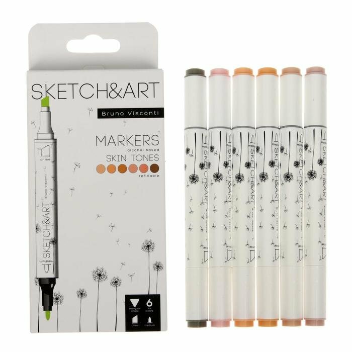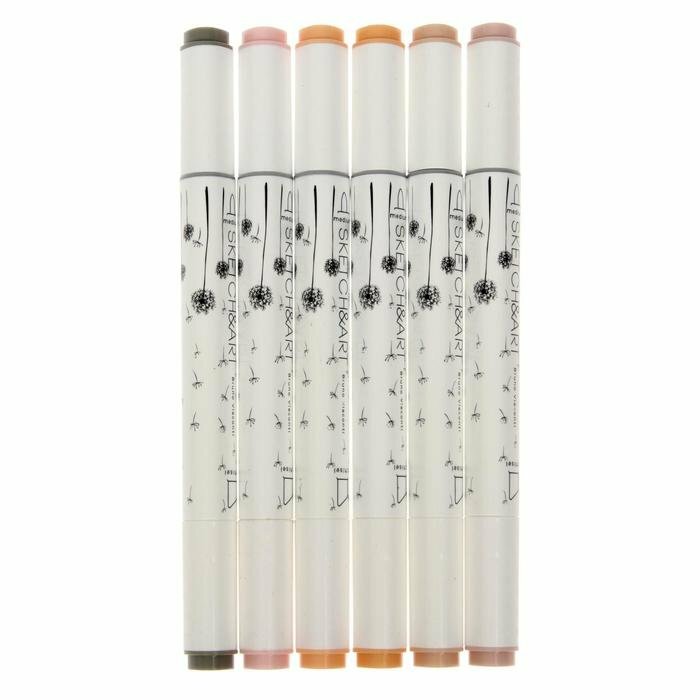 Маркеры для скетчинга фломастеры двухсторонние набор 6 цветов спиртовые для рисования граффити Bruno Visconti "SKETCH&ART. Skin tones" арт.22-0081/09 интересное: