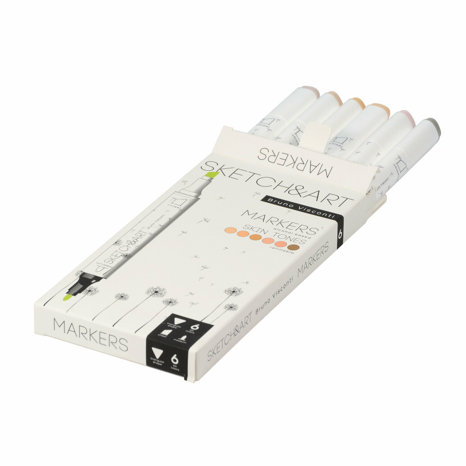 Купить Маркеры для скетчинга фломастеры двухсторонние набор 6 цветов спиртовые для рисования граффити Bruno Visconti "SKETCH&ART. Skin tones" арт.22-0081/09