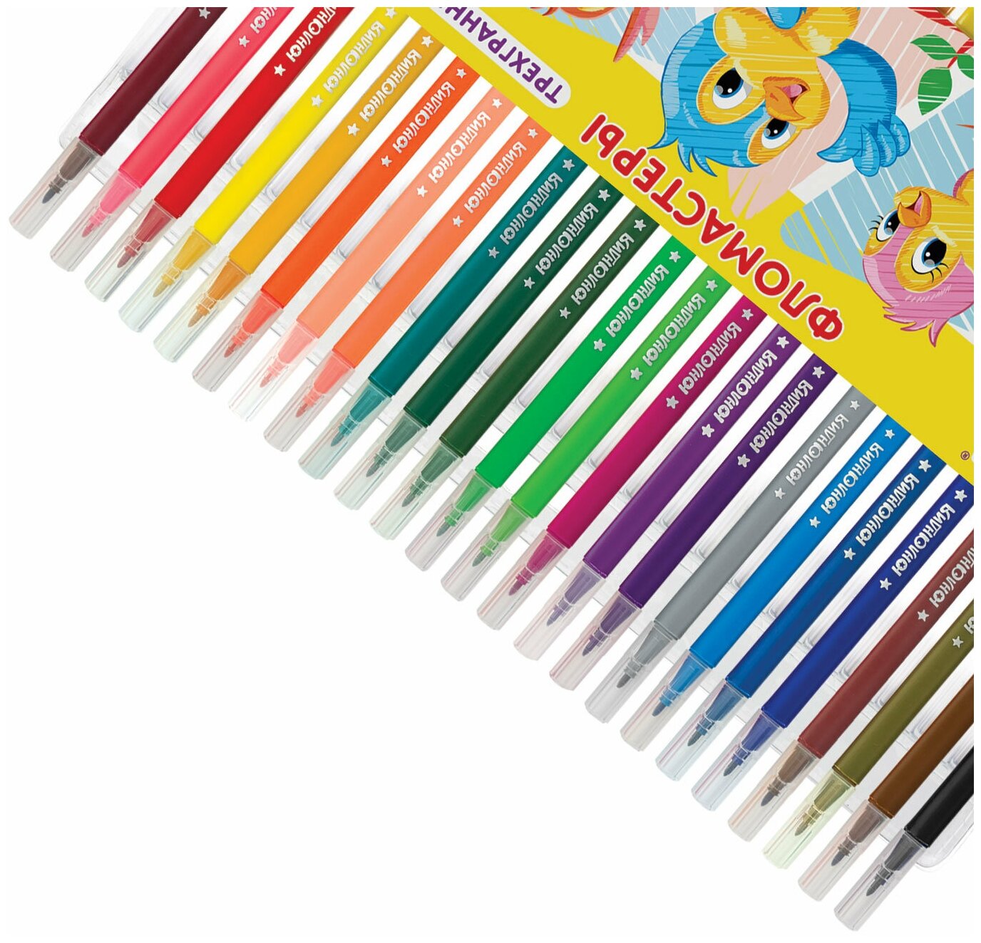 Купить Фломастеры для рисования для детей набор Юнландия 24 цвета, Зоопарк, трехгранные, вентилируемый колпачок
