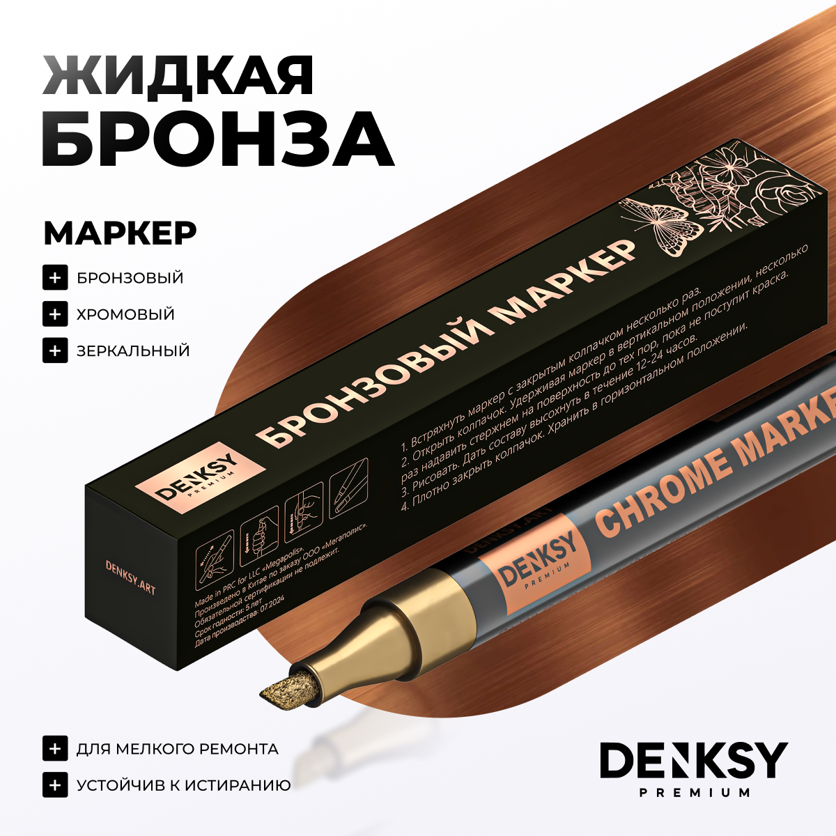 Маркер DENKSY, хромированная зеркальная, цвет бронза, для любой поверхности интересное: