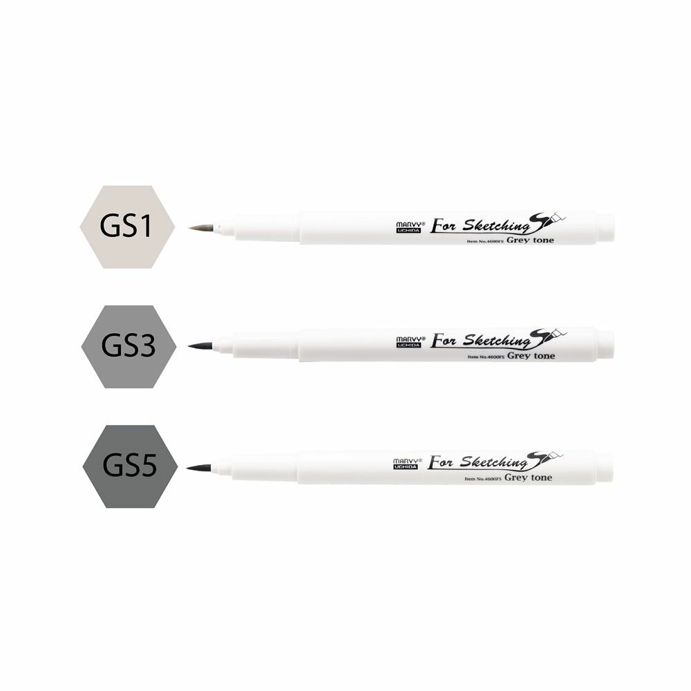 Скетч-маркер (кисть) Marvy Uchida пигментные чернила на водной основе Серый №3 MAR4600FS/GS3