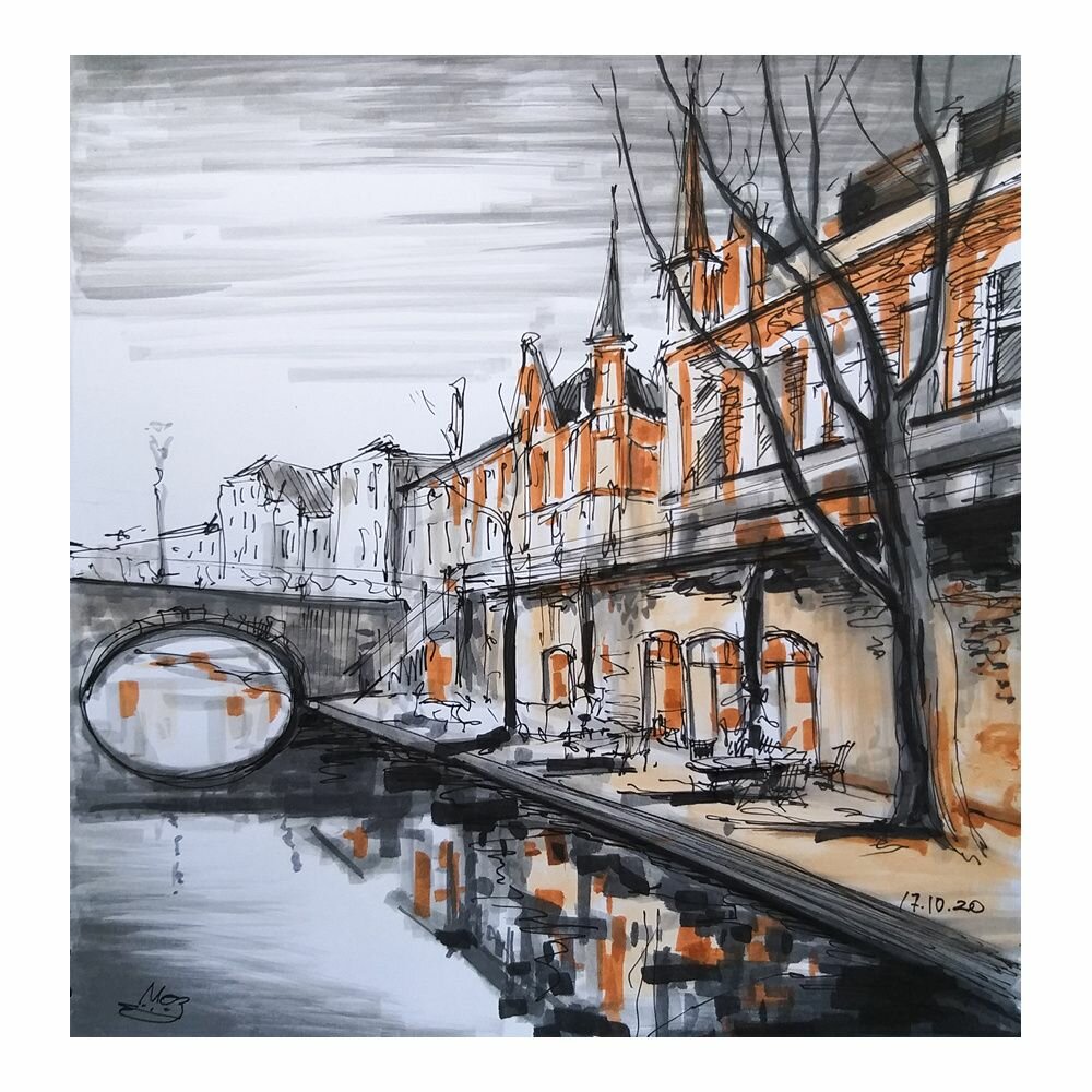 Маркер Marvy Uchida для скетчинга акварельный двусторонний (кисть/капиллярная ручка 0.3мм) бледно-оранжевый MAR1122/16