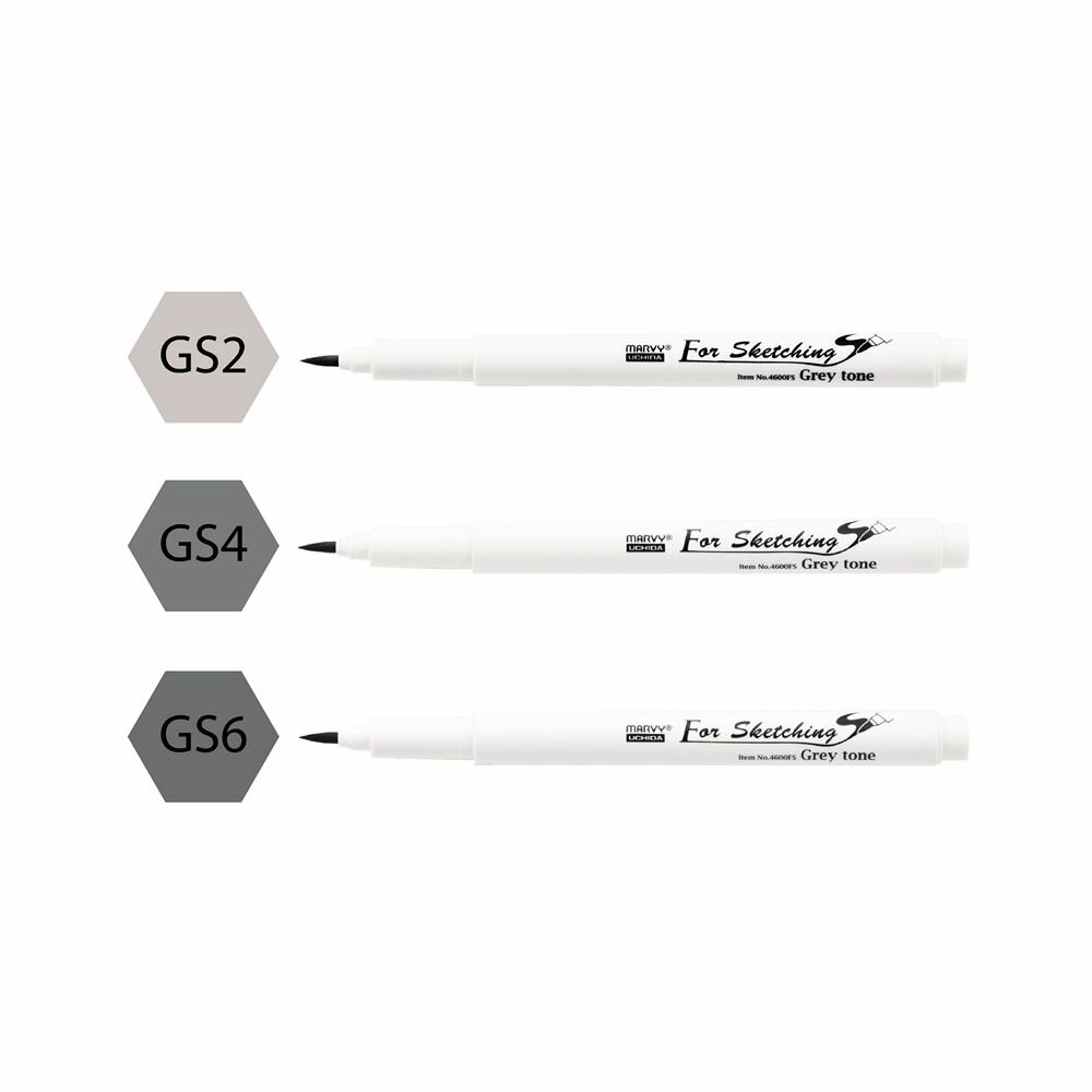 Скетч-маркер (кисть) Marvy Uchida пигментные чернила на водной основе Серый №6 MAR4600FS/GS6