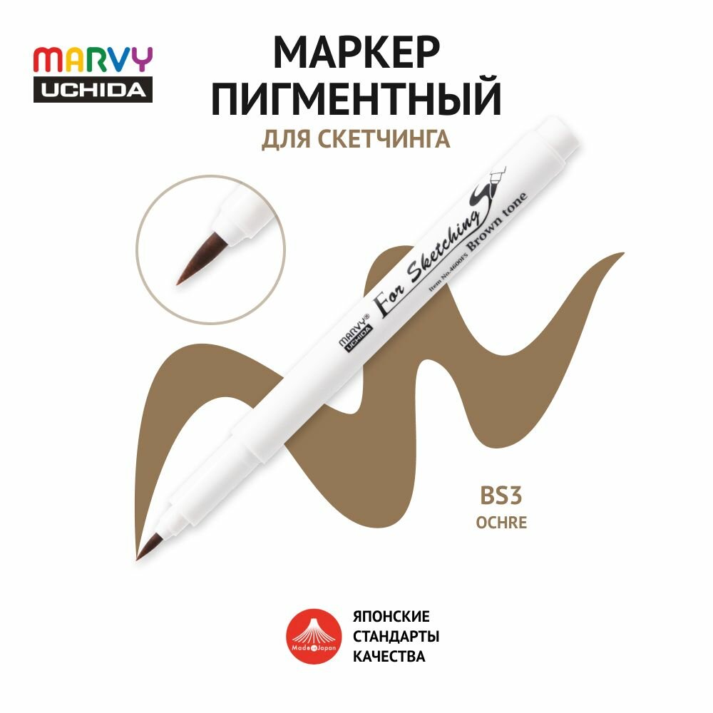 Купить Скетч-маркер (кисть) Marvy Uchida пигментные чернила на водной основе Охра MAR4600FS/BS3