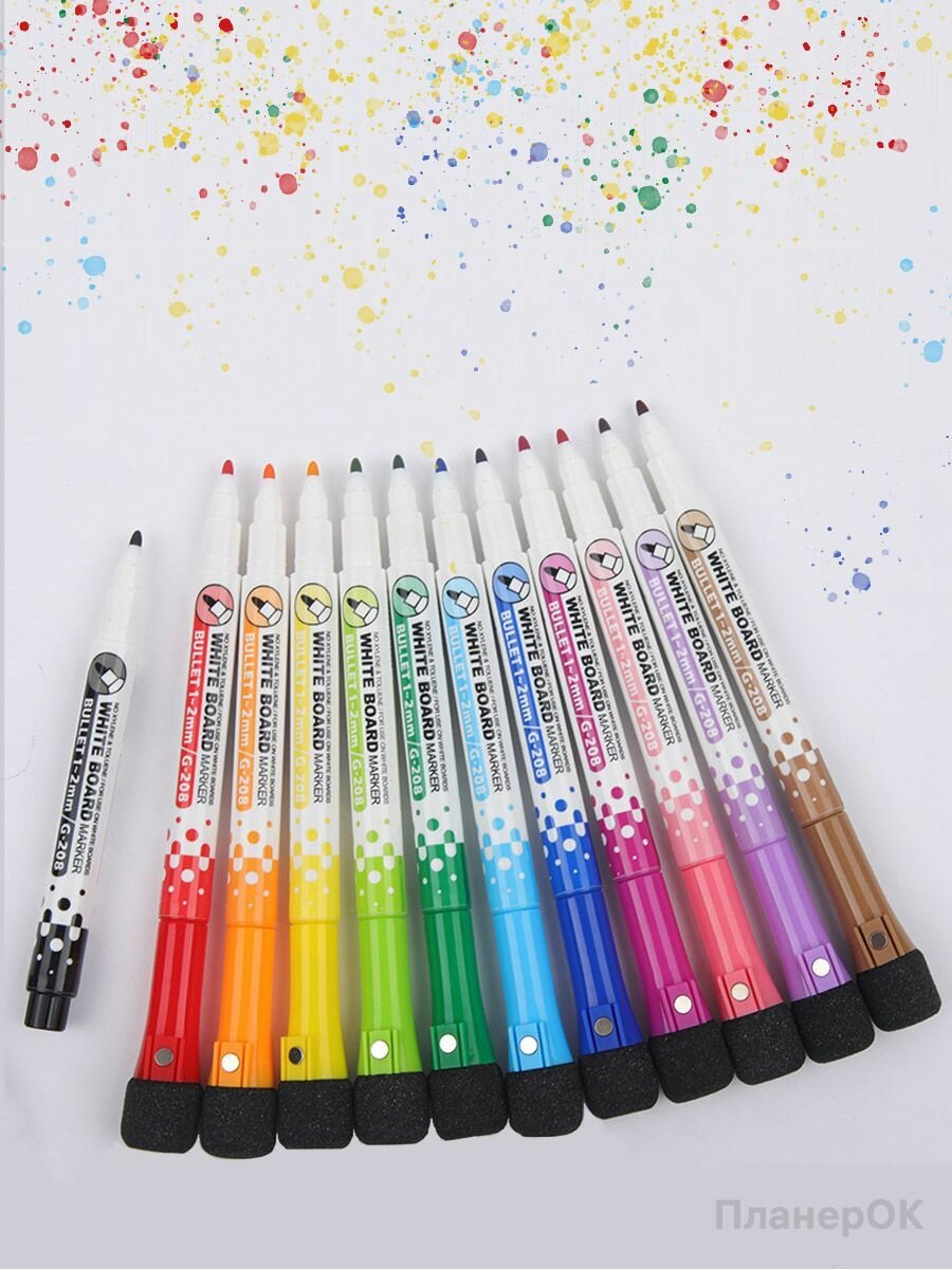 Купить Маркеры на магните, набор 12 шт, для планера, доски стираемые на водной основе пиши-стирай
