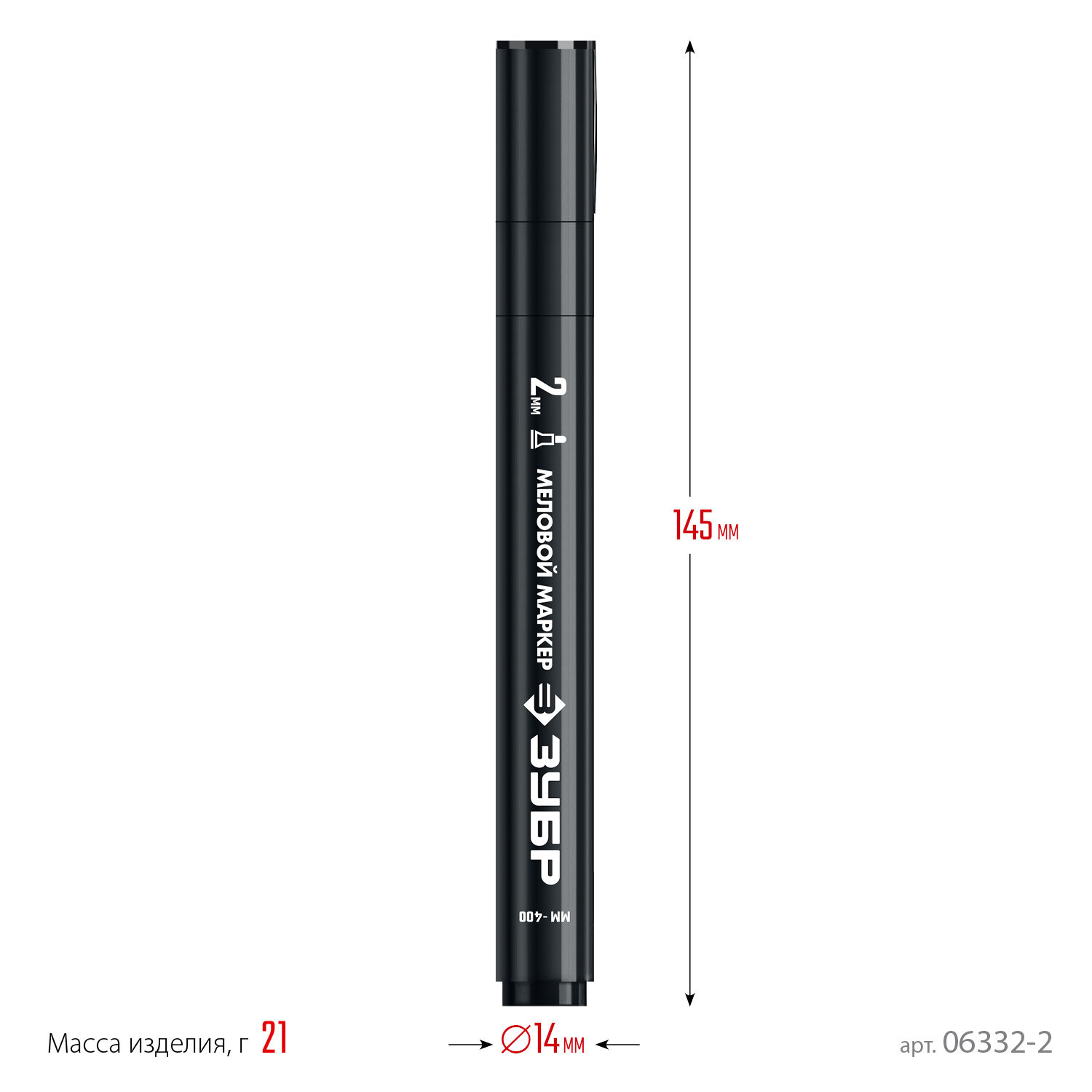 Купить Маркер меловой ЗУБР ММ-400, черный, 2 мм, круглый, профессионал (06332-2)