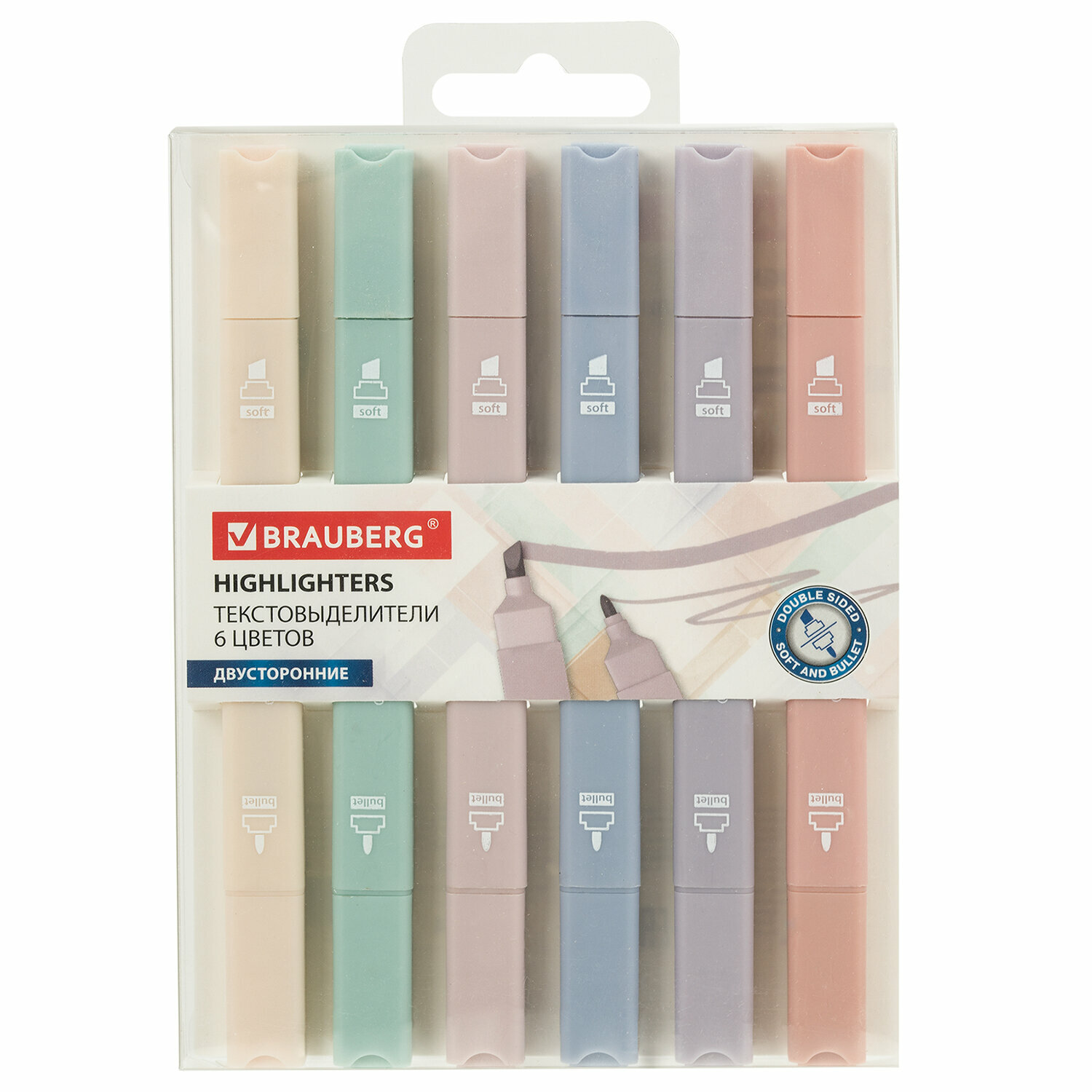 Купить Текстовыделители набор 6 цветов моранди, двусторонние маркеры для рисования, скетчинга и выделения текста, линия 1-5 мм, Brauberg Morandi, 152514