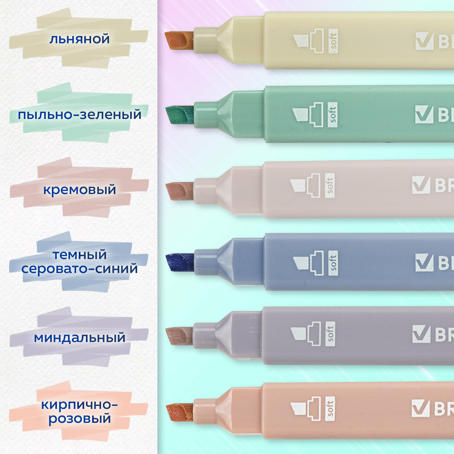 Текстовыделители набор 6 цветов моранди, двусторонние маркеры для рисования, скетчинга и выделения текста, линия 1-5 мм, Brauberg Morandi, 152514 интересное: