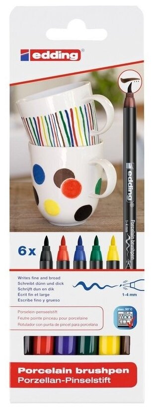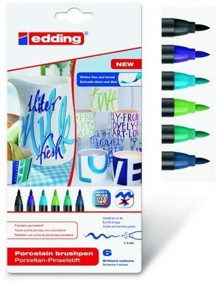 Художественный маркер Edding Набор ручек-кистей для фарфора "Холодные тона", 6цв. интересное: