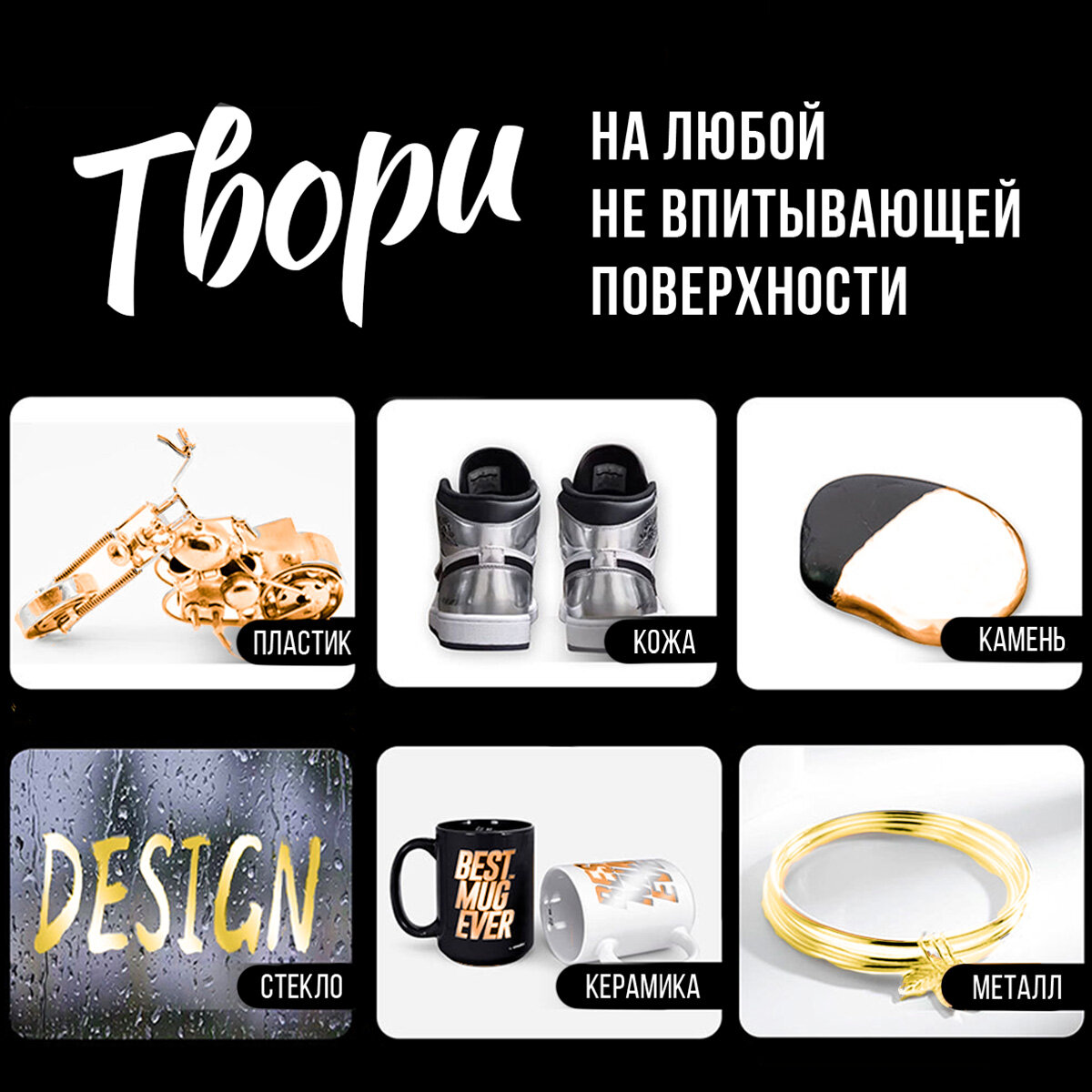 Перманентный Маркер с зеркальным эффектом, жидкий хром для декора, ремонта, теггинга, граффити, скетчинга, золото, 1мм