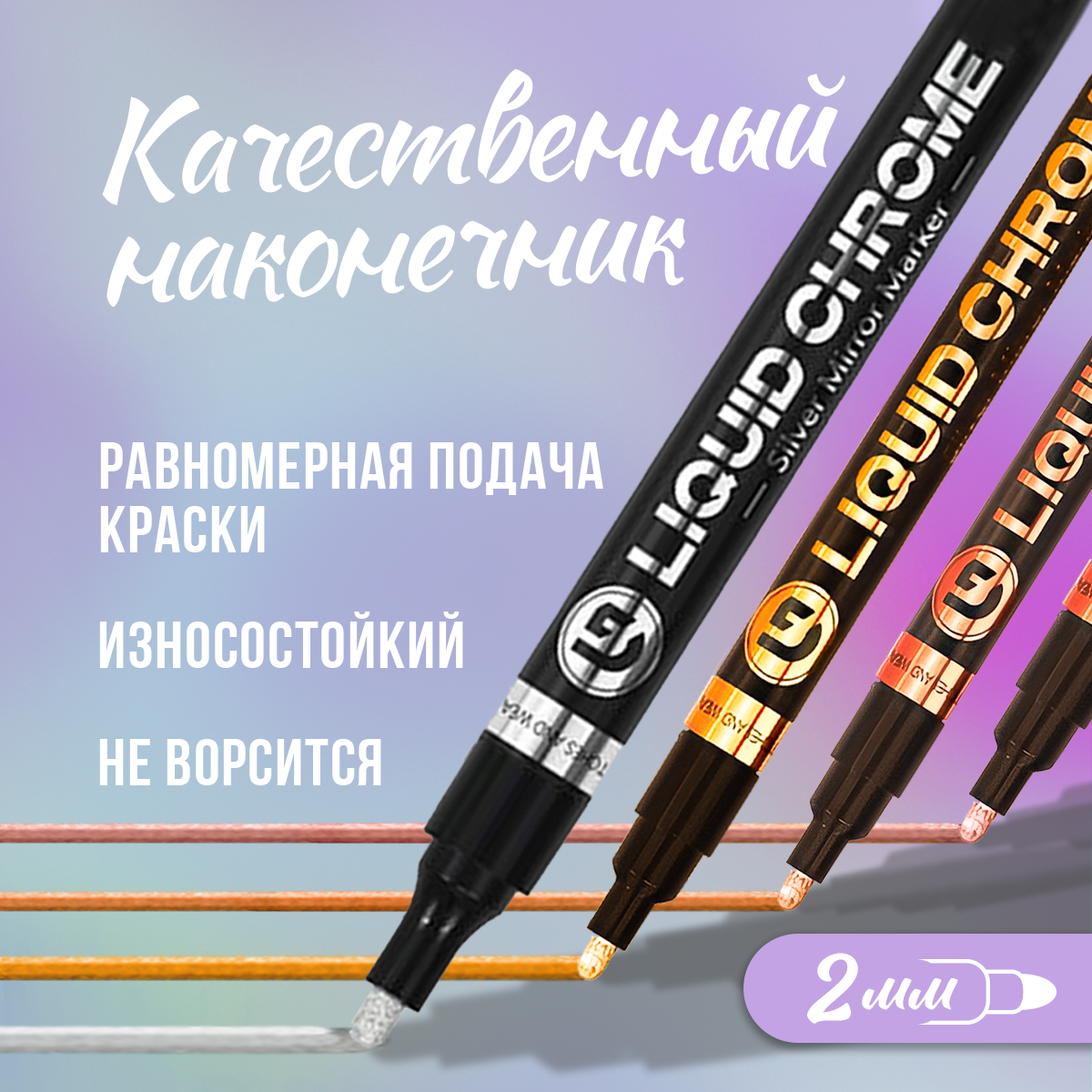 Перманентный маркер-краска от царапин авто, жидкий хром с зеркальным эффектом для декора, ремонта, закрашивание дефектов, моделирования, серебро, 2мм