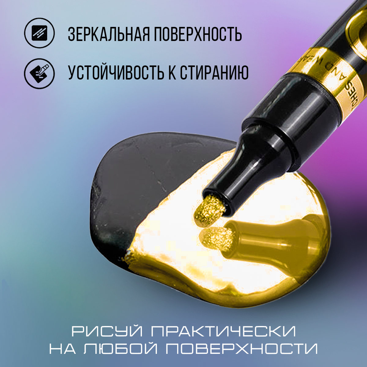 Перманентный Маркер с зеркальным эффектом, жидкий хром для декора, ремонта, теггинга, граффити, скетчинга, золотой, 2мм