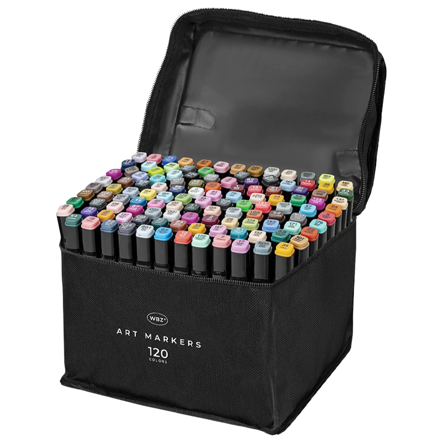 Купить Маркеры для скетчинга, фломастеры для рисования двусторонние набор 120 штук, в текстильном боксе, WBZ, 152576