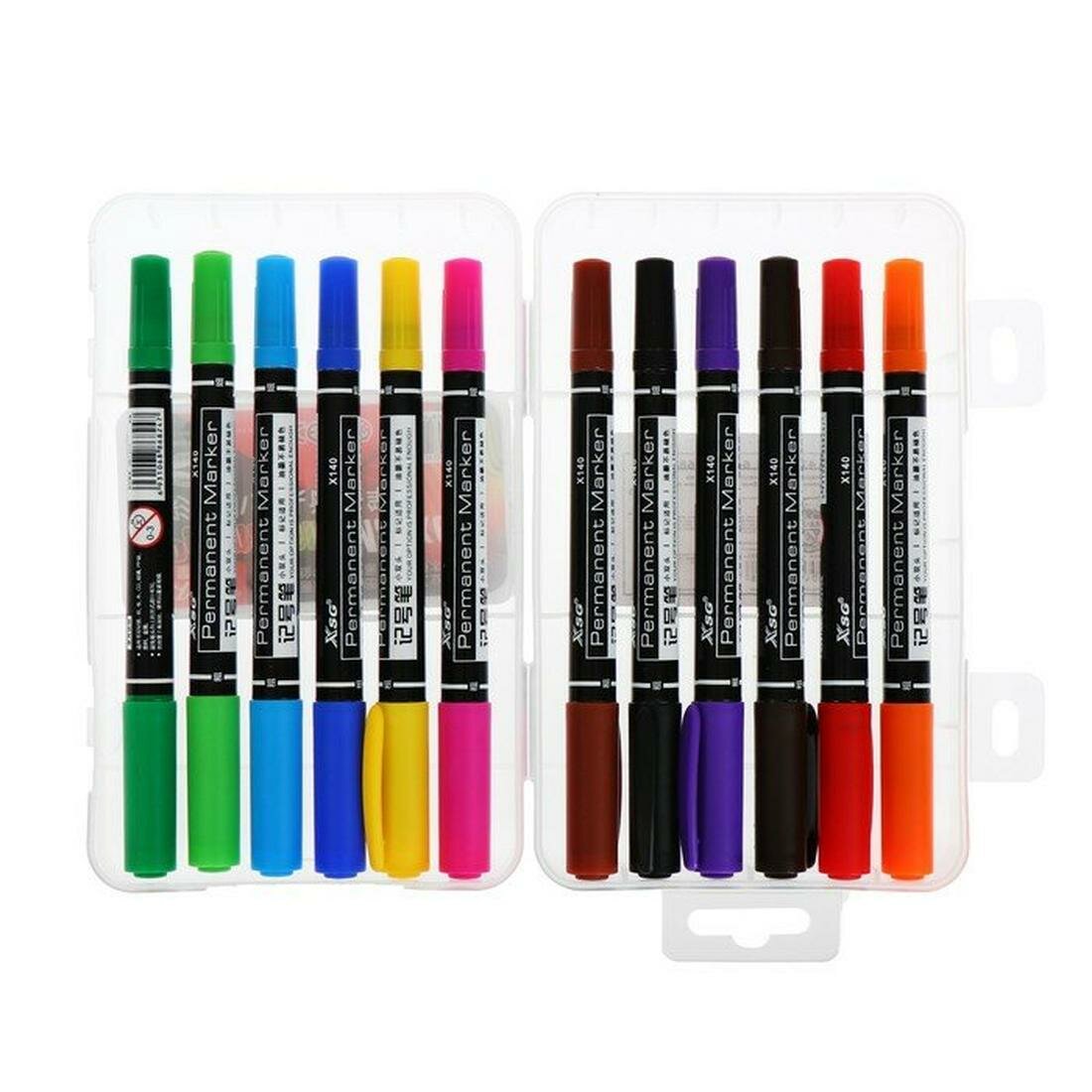 Набор маркеров перманентных 12 цветов двусторонних 0,5 мм / 1,0 мм в пластиковом пенале интересное: