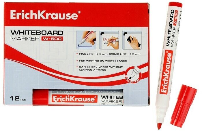 Маркер для белых досок ErichKrause W-500, цвет чернил красный, стираемый