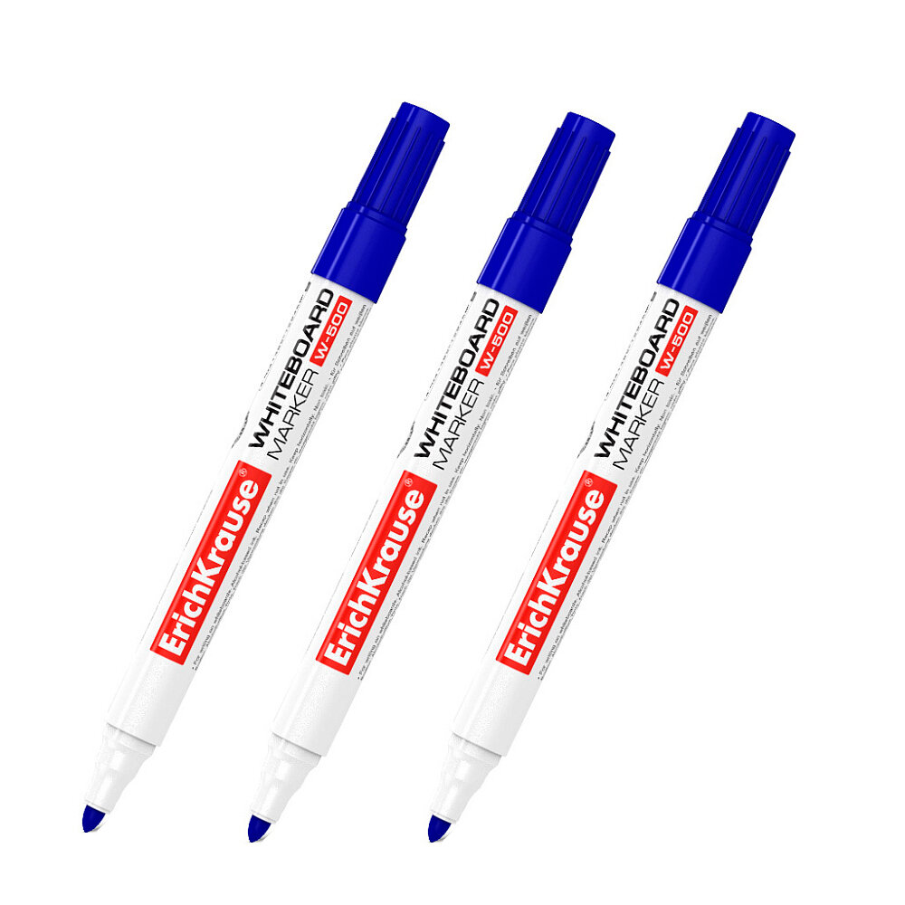 Купить Маркер для белых досок ErichKrause W-500, цвет чернил синий, стираемый, 3 шт