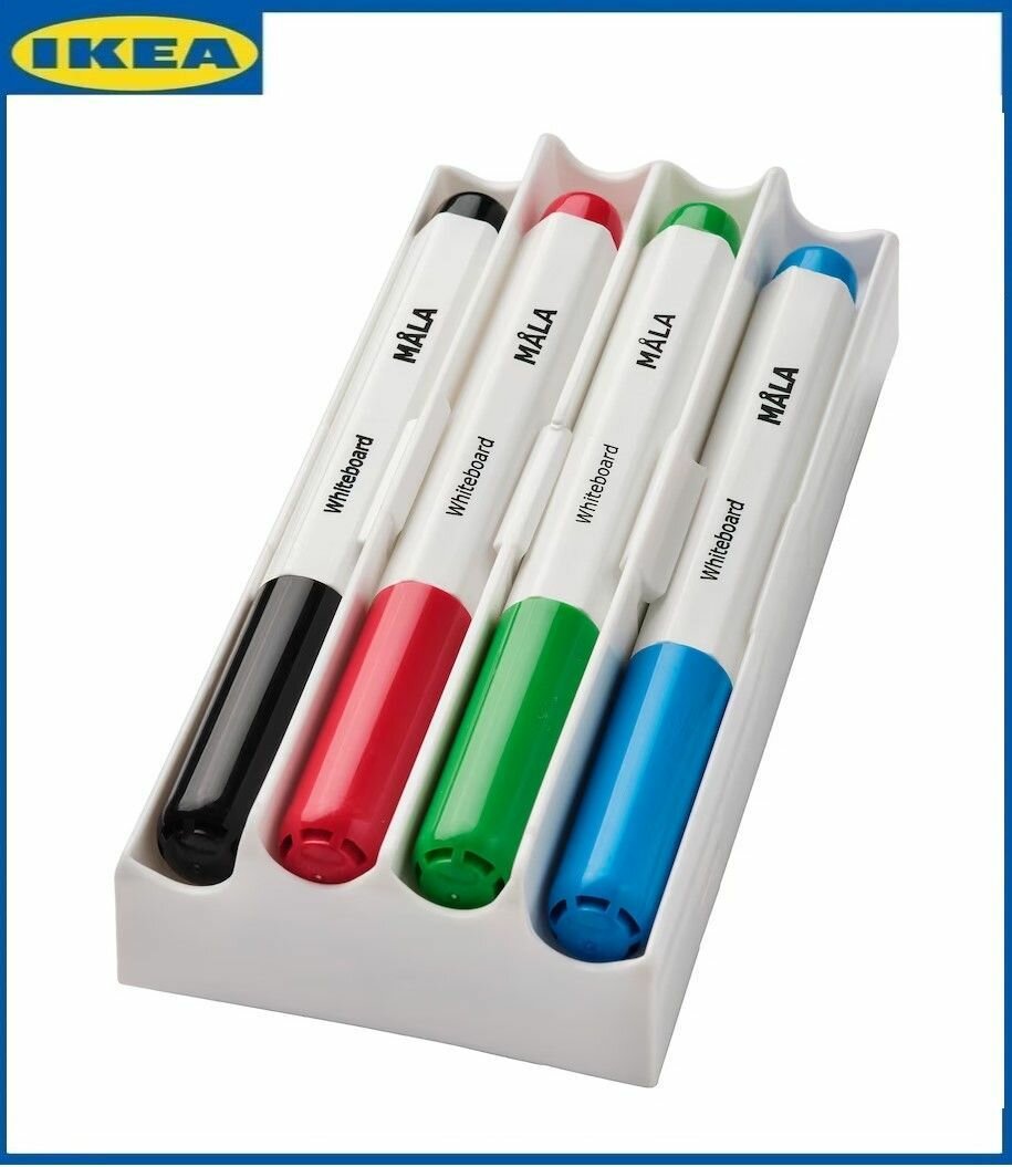 Купить Набор маркеров с губкой IKEA мола для доски. 4 разноцветных маркера + губка. Икеа MALA