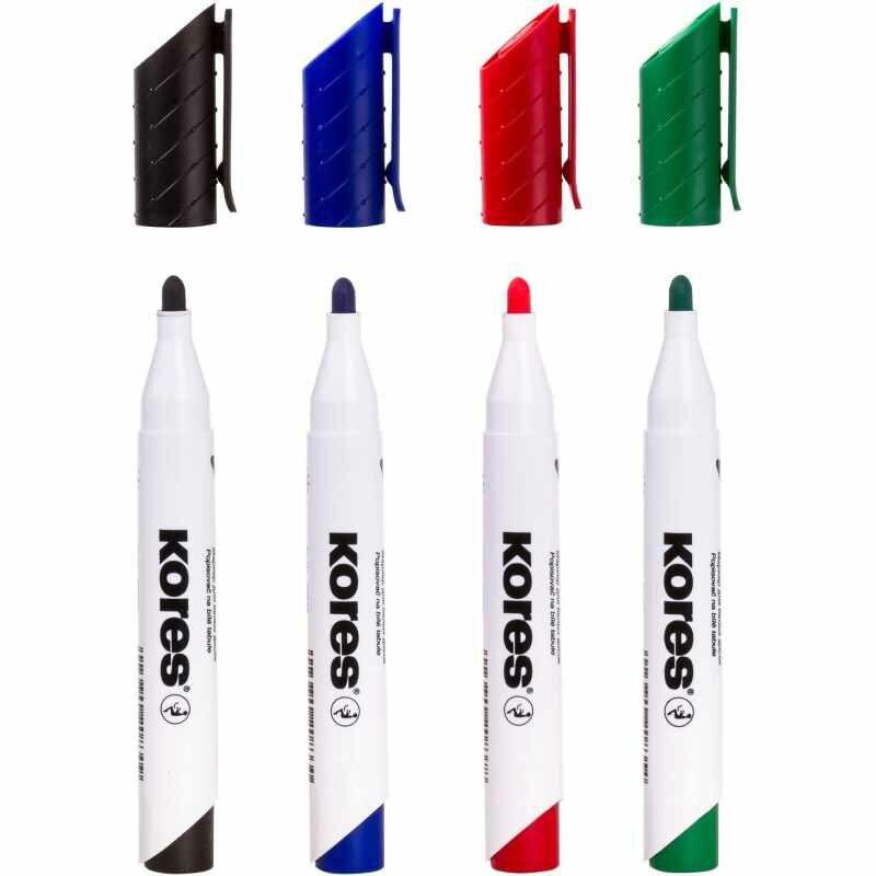 Купить Маркеры для белой магнитной доски Kores, стираемые, на водной основе, линия 1-3 мм, 4 шт