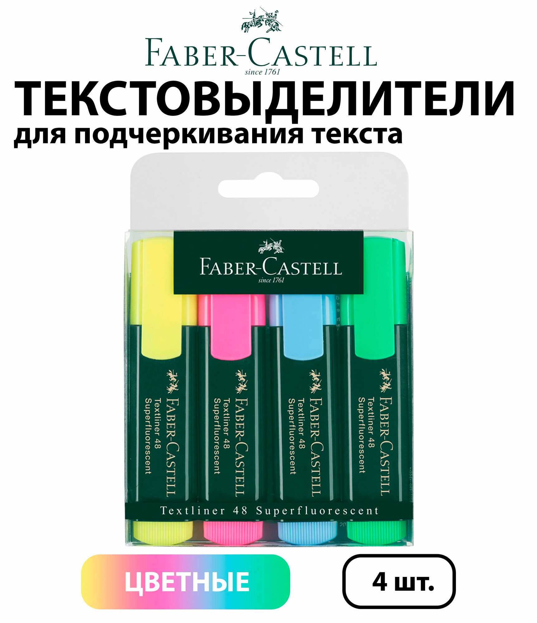 Набор 4 шт. - Текстовыделители Faber-Castell "48", 1-5 мм, пластиковая упаковка, с европодвесом 154804 интересное: